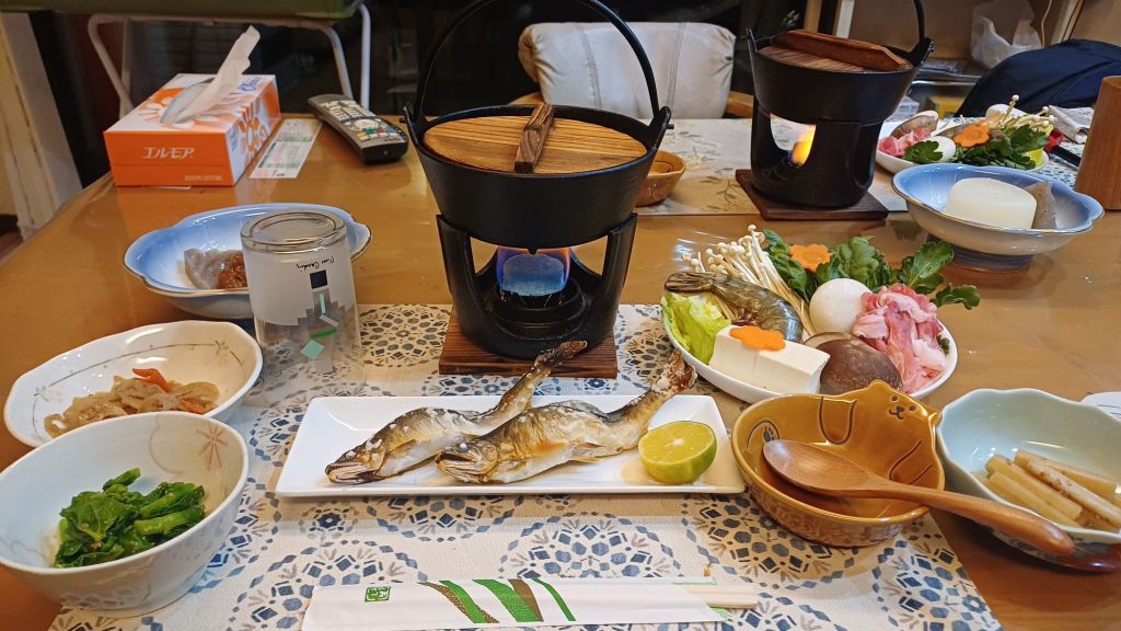 Om half 5 kwamen we aan bij Sudachi-an en de eigenaar bood ons aan ons naar het plaatselijke badhuis (met hete waterbronnen) te brengen. Dit was een weldaad voor mijn spieren en gewrichten. Ik heb er een half uur in gelegen.