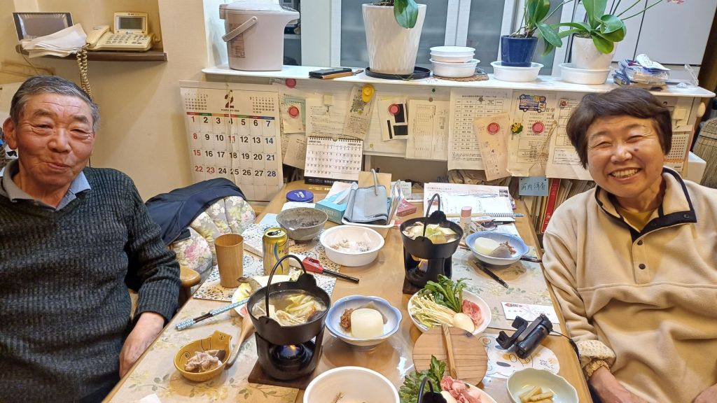Ik slaap vannacht in een oude, eenvoudige ryokan. Dit is in de eetzaal. Oma is dementerend en de kleindochter leert haar Engelse les. (Ze durfde niet met mij te oefenen). Dankzij Google translate heb ik nog wat met de eigenaresse kunnen praten. Haar man heeft een stukje land waar hij rijst op verbouwd. Het is hard werken hier in een klein bestaan. De enige contacten die ze hebben met de rest van de wereld is met de pelgrims die hier komen slapen. De glamourwereld van een duur winkelcentrum in Osaka, dat op televisie was, is heel ver weg voor hen,