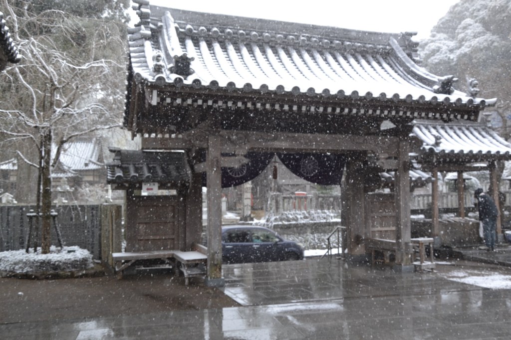 Hierna ging de tocht naar beneden, want de tempel ligt op de volgende berg: Shosanji. Het is weer een nieuwe ervaring: dalen over met sneeuw bedekte spiegelgladde tegels.