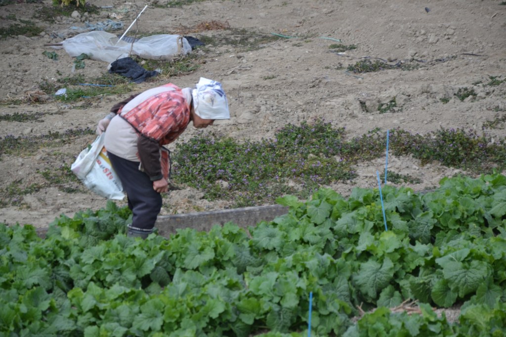 Deze dag begon in de vrieskou, op de rijstvelden lag nog sneeuw. Alle wegen, stoepen en bruggen zijn schoon. Hoe ze dat voor elkaar hebben gekregen? Misschien is het asfalt met iets bewerkt? Bij de bruggen en op hoeken liggen nog steeds de zakken strooizout te wachten, niet gebruikt.