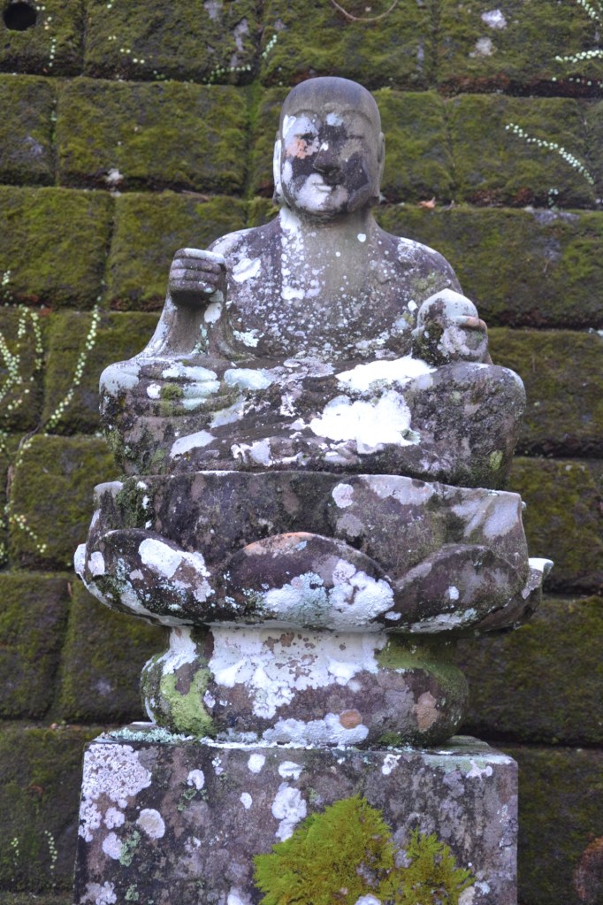 Vandaag, 10 februari moest (nee wilde) ik in een ruk door bekkakutempel 3 bezoeken. Het was moeilijk geweest dit te plannen. Heel lang was er een ryokan vlak voor de plek waar het pad naar boven ging. Want Jigenji ligt op 600 meter hoogte. Maar die ryokan is dicht. Ik had nu bedacht vanaf die heerlijke slaapplek van gisteren in een ruk door te lopen naar Jigenji en dan te slapen in de dichtst bijzijnde ryokan. Nou ja, het is gelukt maar alle boekjes adviseren niet voor niets alleen hier een dag voor uit te trekken. Maar ik wilde weer eigenwijs zijn. Heen was het 15 km (waarvan de laatste 5 omhoog klimmend over onmogelijke paadjes) terug ongeveer net zo veel omdat ik over de weg terug wilde, waarbij ik even bang was in een ander dal te zijn uitgekomen.