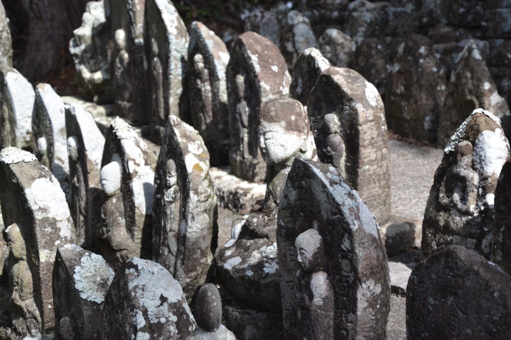 Veel tempels waren vroeger voor vrouwen verboden. Kongōchōji ligt halverwege op een berg en aan de voet van deze berg ligt een groep rotsen in de oceaan. Deze plek werd toen door de vrouwen als tempel gebruikt. Vorige keer sliepen we in deze tempel en ik kan me nog herinneren dat ik speciaal voor die plek ‘even’ naar beneden ging. Nou ja, toen ik nu over een onmogelijk paadje weer naar beneden ging kwam ik heel ergens anders uit en was er van de rotsen niets te zien. Zo gaat dat met paden……herinneringen,…..