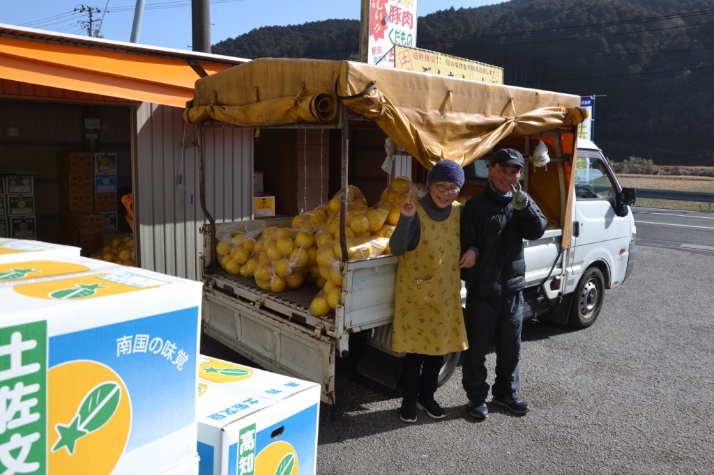 Onderweg passeerde ik een winkel waar pompelmoes te koop lag. Deze vriendelijke mensen wilden me er 4 geven, ik wist dit tot 3 terug te brengen, waarvan ik er 1 ter plaatse op at. De 2 (zware, want ze zijn groot) andere heb ik verder mee genomen (en ook alweer opgegeten).