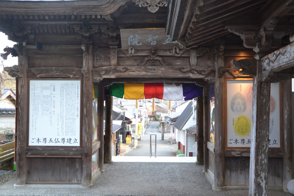 Volgens het boeddhisme is het eiland een mandala, als je er rondom loopt, loop je dus a.h.w. een mandala. Deze mandala is in 4 dojo’s (een soort religieuze gebieden) verdeeld, de eerste is dat van het religieus ontwaken, ‘Hosshin no dojo’, die begint bij tempel 1 en eindigt bij deze ltempel 23, de grenstempel. De tweede is die van de religieuze discipline, ‘Shugyo no dojo’, dat begint bij tempel 24, en eindigt bij tempel 39. (Waar ik ook eindig).