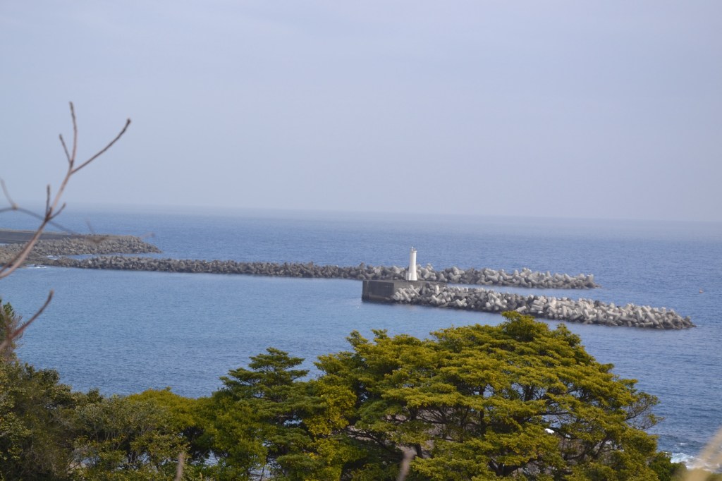 De foto is vanaf de Kaap van Muroto gemaakt, deze kaap heeft een bijzondere betekenis voor het Zuivere Land Boeddhisme (een stroming). Het geloof is namelijk dat als je hier van de kaap af de zee in springt je direct in het ‘Zuivere Land’ komt. (een omgeving ideaal voor spirituele training, vrij van lijden enz, maar nog niet het paradijs) Het seculiere Japan heeft deze plek hermetisch afgesloten.