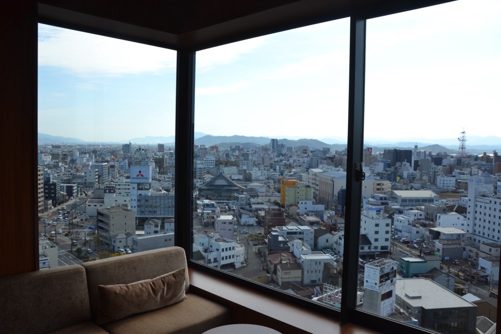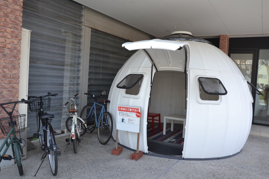 Ik slaap hier in Tokushima in het hotel Clement, een soort onderdeel van het station. Er zijn nog steeds rauwe eieren bij het ontbijt, maar ze liggen wel keurig op een schaaltje. Er rijdt een robot achtig karretje rond om de gebruikte kopjes en borden op te halen. En ik heb een kaartje, zonder kaartje doe je niets, de lift, de deuren naar het ‘cleaning station’ (de wasmachines), bij alles heb je het kaartje nodig.