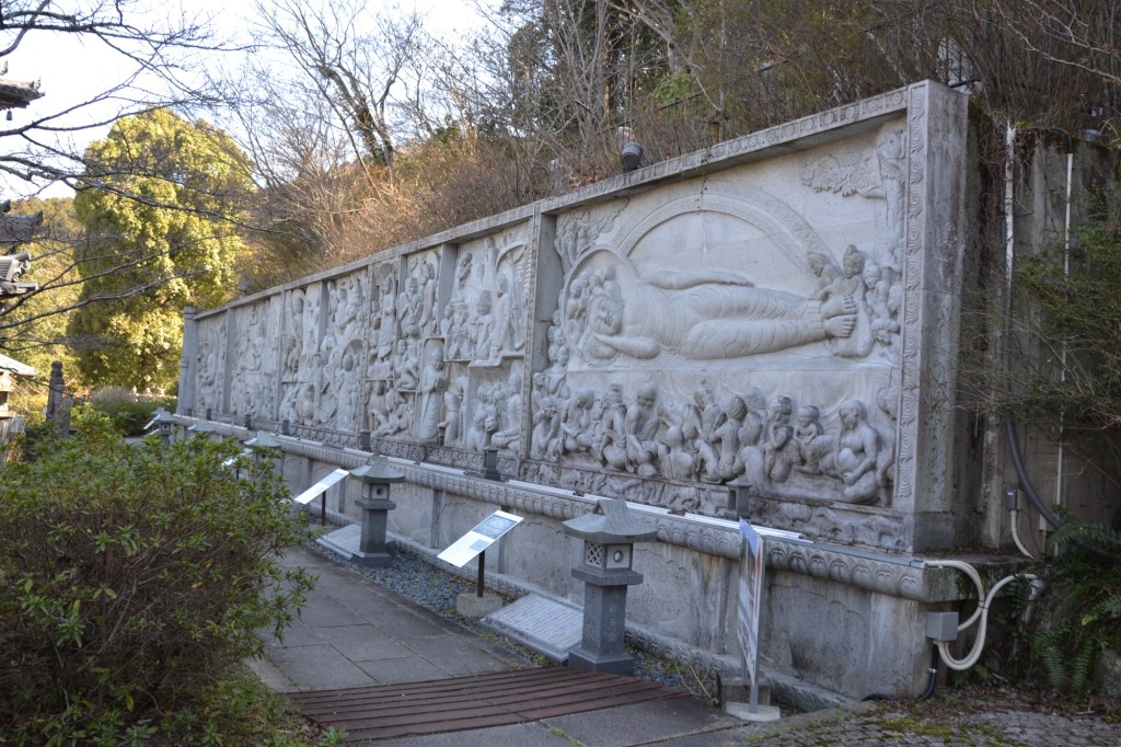 Er is ook een lange muur met een beeldverhaal van de Jataka preek, de eerste toespraak die de Boeddha hield. Onduidelijk wanneer en wie het gemaakt heeft, maar de afbeeldingen zijn zeer on-Japans. Het is een kopie van de rotsen van Amaravati in India. De vrouwelijke vormen en ontblote bovenlichamen zijn waarheidsgetrouw ook gekopieerd.