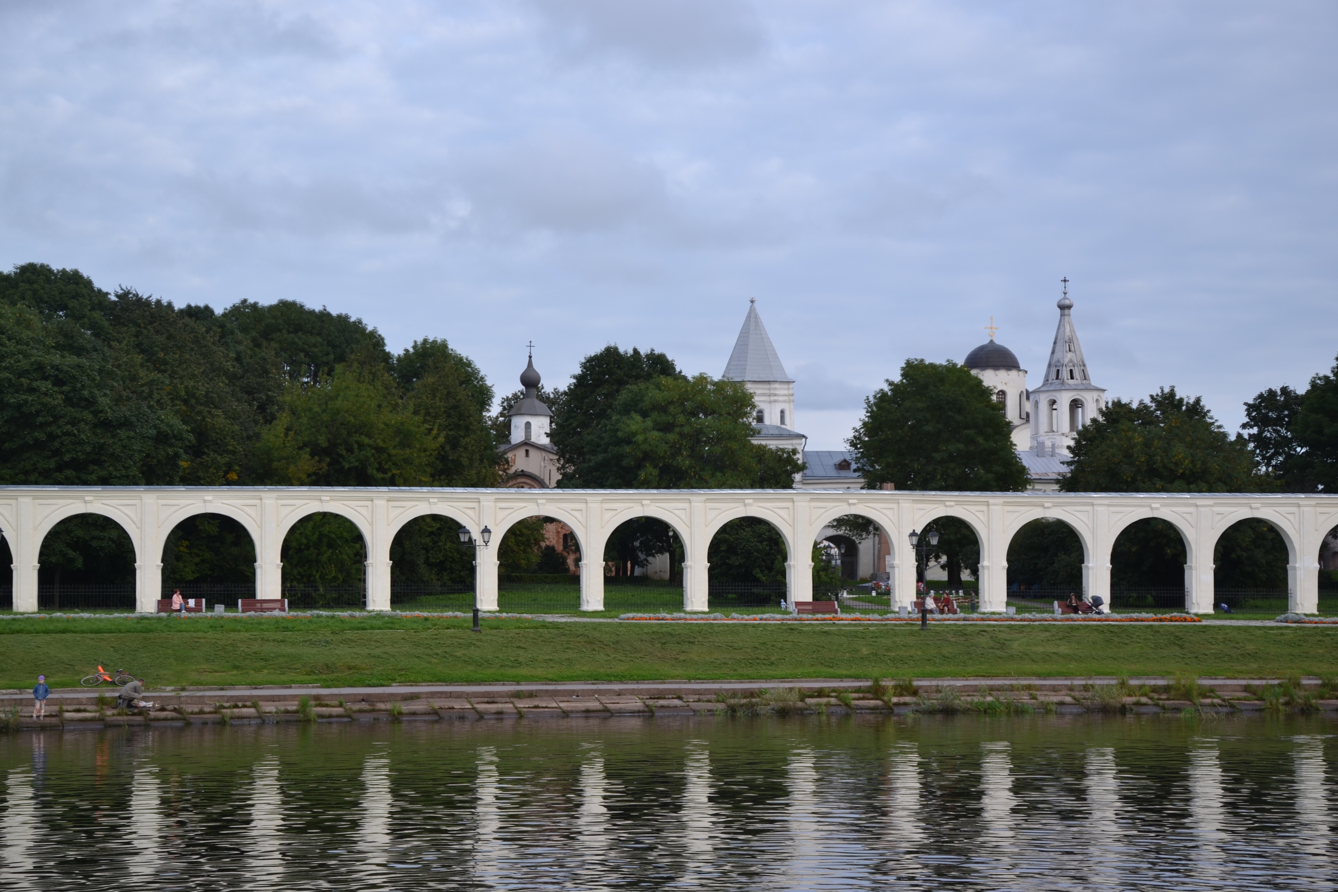 Zicht op de arcade van de markt. Veli Novgorod is een hanzestad. De markt was direct aan de rivier. Hiervan is alleen de arcade bewaard gebleven, de rest is weggebombardeerd in de 2e wereldoorlog.