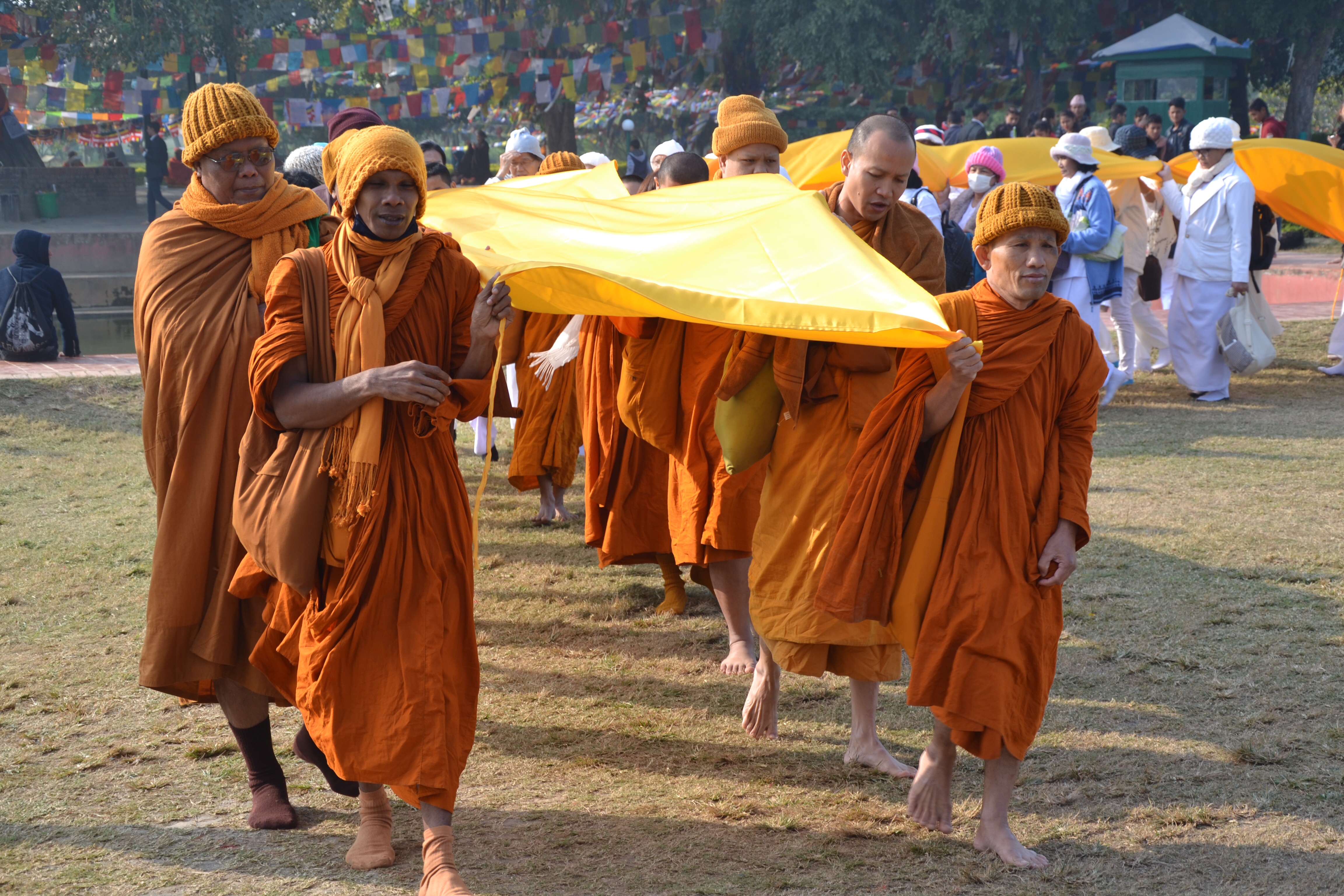 Ik stond in de rij voor het bezoek aan de Maya Devi tempel tussen een grote groep pelgrims uit Myanmar. Ze waren ontzettend blij dat ze Lumbini konden bezoeken en dat ze naast mij stonden. Hun reis was georganiseerd dood shrine express (stond er op hun tasje) ze werden begeleid door enkele monniken en gingen na het bezoek langdurig in gebed. (Ik heb nog even gedacht de Rohinghya’s met de monniken te bespreken, peace…… maar wie ben ik dat te doen, en ze waren zo gelukkig, eindelijk het land uit, eindelijk op pelgrimage).