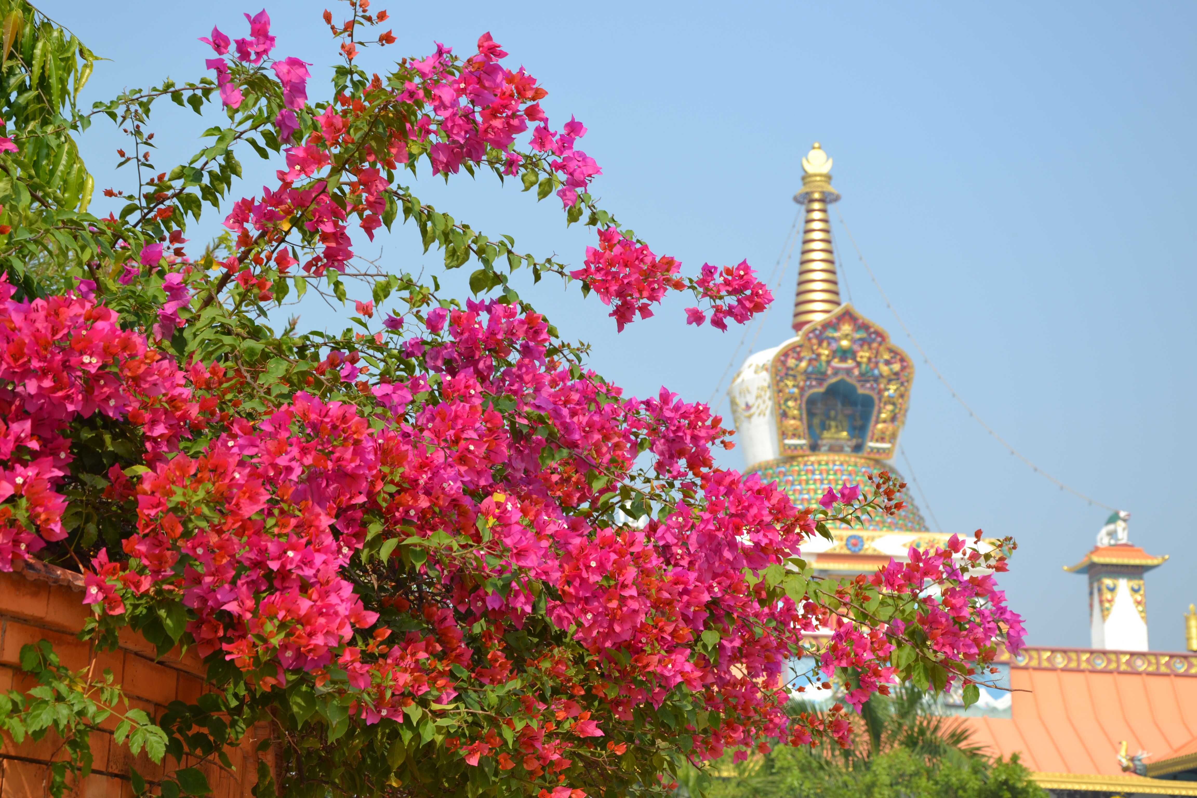 En ik kon het natuurlijk niet laten van deze prachtige bougainville voor de Tibetaanse stupa een foto te maken.
