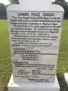 In Lumbini (zegt het verhaal) is de Boeddha geboren. In tegenstelling tot Bod Gaya (waar hij de verlichting kreeg) is dit een rustig slaperig plaatsje. Er is nauwelijks een westerse toerist te zien, laat staan een mediterende (vrij dominant in Gaya aanwezig) en de enige bezoekers zijn pelgrims uit de omringende boeddhistische landen.