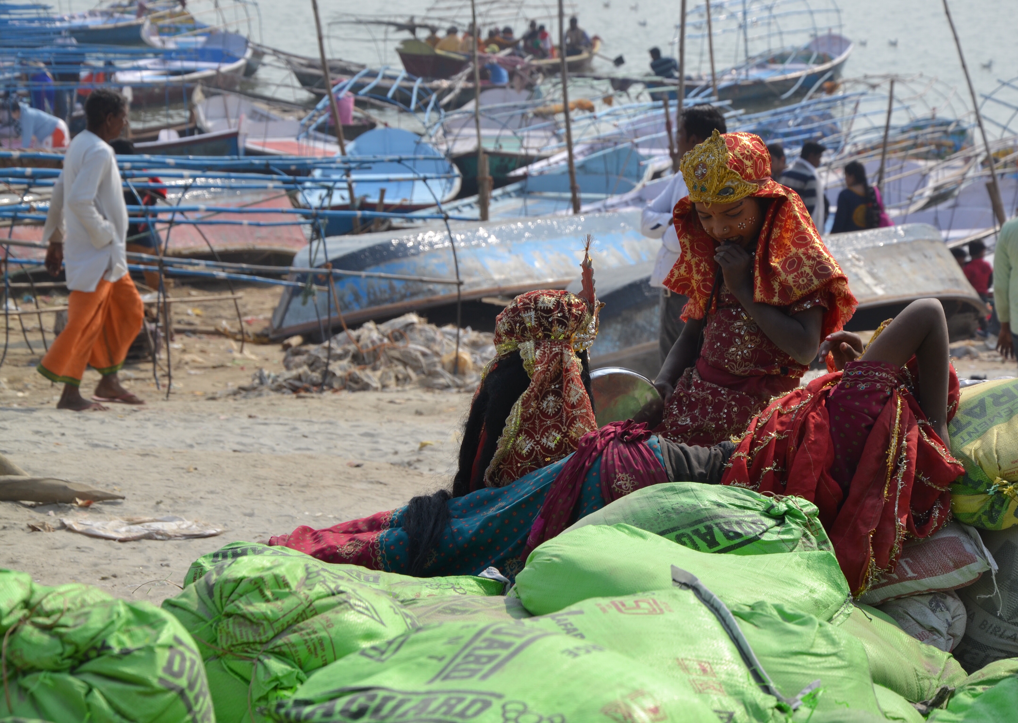 Daarna ben ik naar de Sangam gegaan. Dit is de plek waar de Yamuna en de Ganges elkaar ontmoeten en als 1 rivier verder stromen. Hindoes geloven dat zich hieronder nog een derde (mythologische) rivier bevindt, de Saraswati. Ook deze voegt zich in. Dubbel dubbel heilig dus.