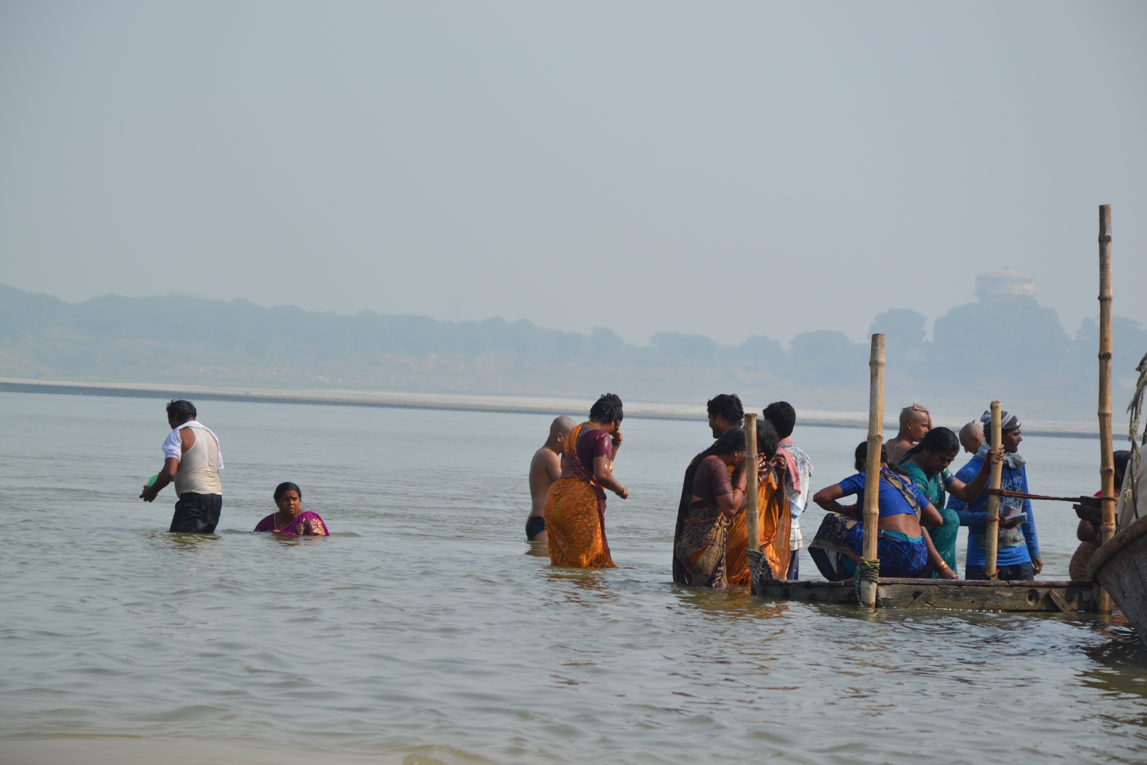 Op de plek zelf was het een drukte van belang. Iedereen nam hier een ‘shower’. (Een ritueel bad in het zeer smerige water) men begreep gelukkig dat ik slecht foto’s wilde maken, maar haalde me toch over een hand water over mijn hoofd te gooien, ‘that’s also enough’.