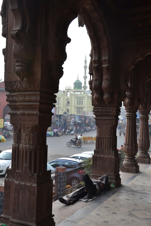 Twee straten verder stond het oude paleis van de maharadja, eens de glorie van Indore. In 1984 brak er brand uit en nu staat eigenlijk alleen de oude façade er nog.