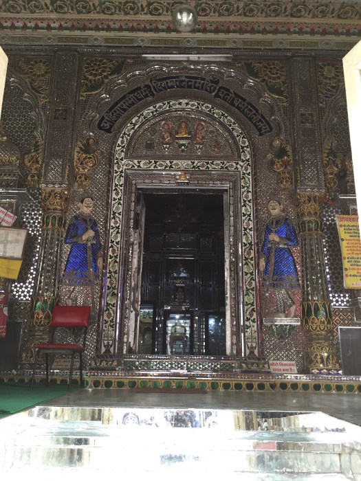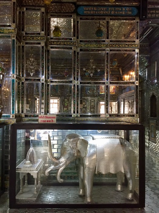 In de tempels mag je geen leer dragen, maar over mijn riem werd niet moeilijk gedaan. Deze tempel was helemaal bedekt en ingericht met spiegels en glas, erg bijzonder.