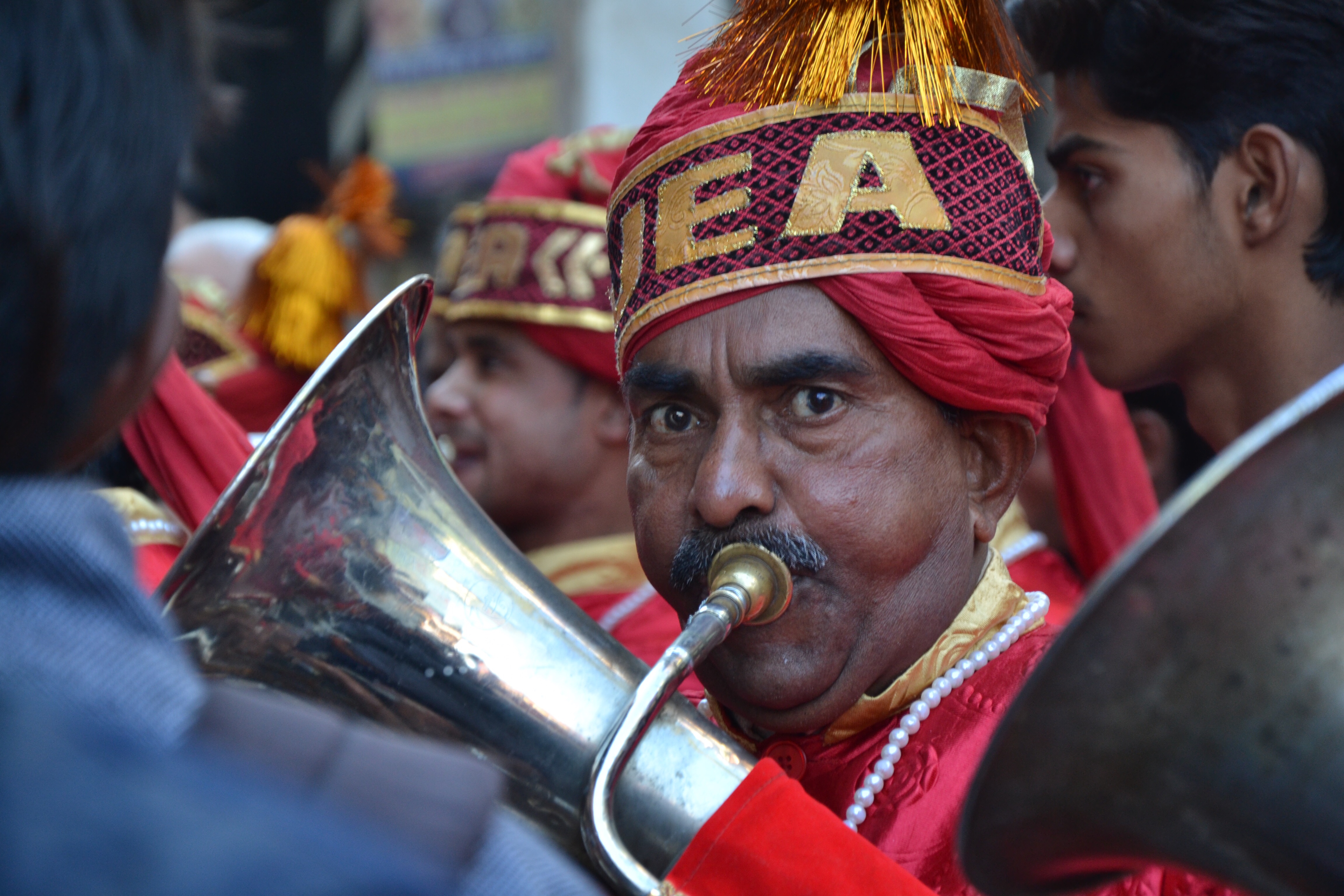 De eerste (en enige) tempel die ik die eerste dag ‘vond’ was de Baanke Bihari, de belangrijkste tempel van Vrindavan. Het was enorm druk, en om het wachten van de pelgrims te verlichten trad er een brassband op.