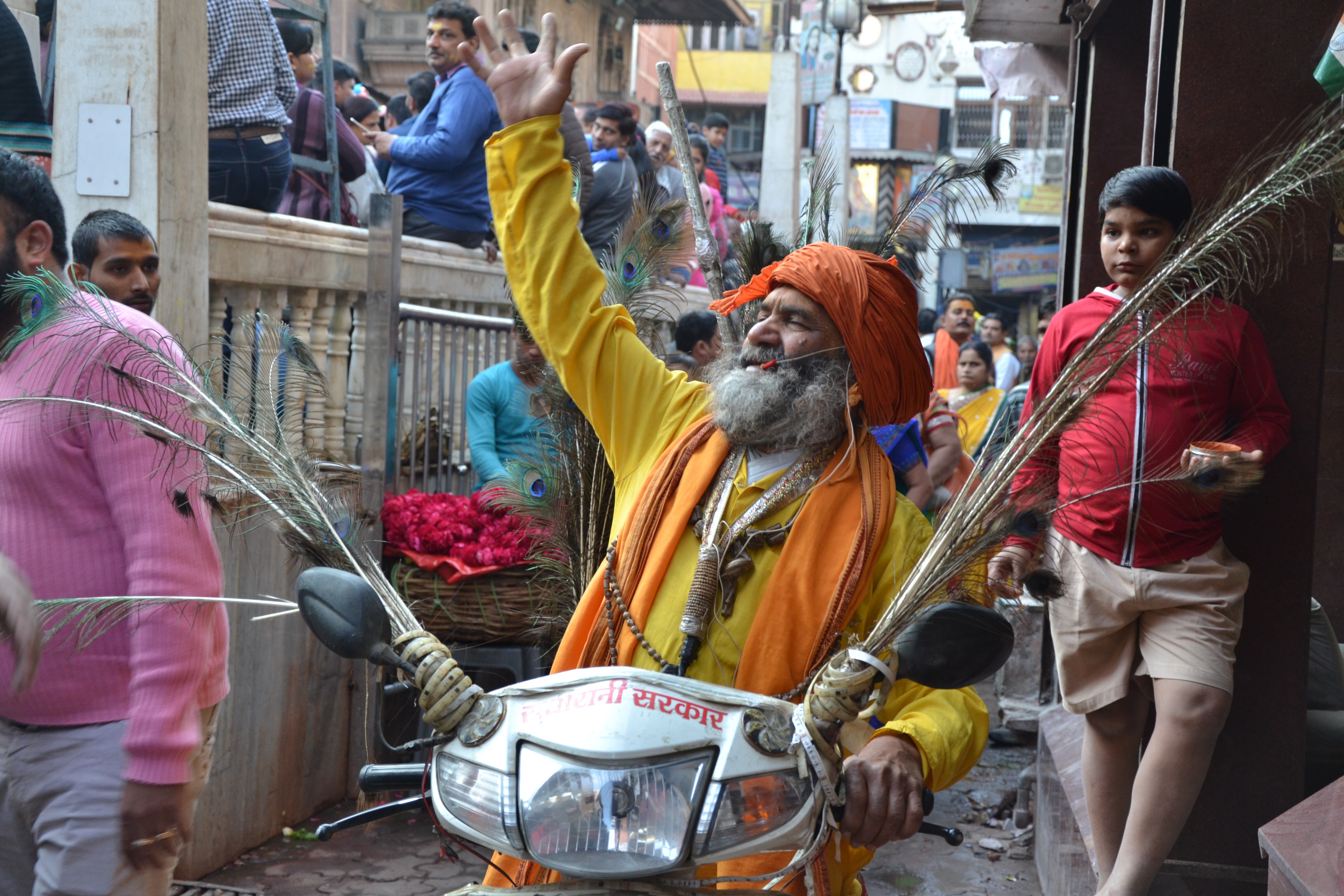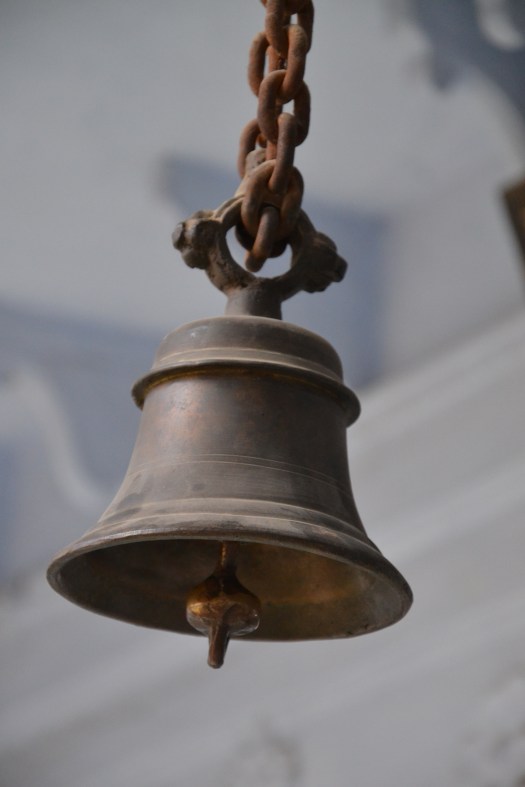 Tussen 6 en half 8 ‘s ochtends wordt de stad wakker van de tempelbellen. Het geklingel raakt de ziel, veegt elke frustratie, alle gevaar en alle teleurstelling weg. Alles is harmonie, er is alleen maar eenheid. Elk lichaam is een deel van de geest. De boodschap die Arjun van Krishna in de Baghawat Gita kreeg: vergeet alle andere dharma’s (hier: wetten) herinner je alleen mij, die boodschap ervaar je in de ene na de andere tempel.’ (Uit de Indiase gids)