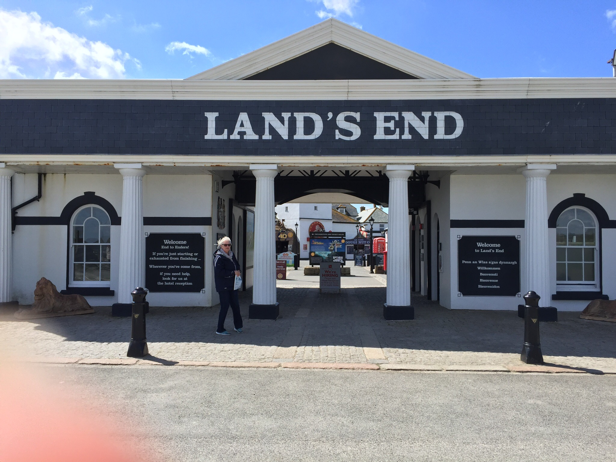 Die mevrouw poseerde voor haar man, ze zei nog sorry tegen me (alsof iets deze foto zou kunnen bederven en ze heeft tenslotte, met haar man, in een auto deze plaats bereikt!) Ik heb voor mijn tante hier een kaart gekocht. Het meisje uit de winkel vroeg of ik er een Landsend-special-sign op wilde. Ik begreep dit niet en vroeg waarom? Ja, dat wist ze bij nader inzien ook niet.