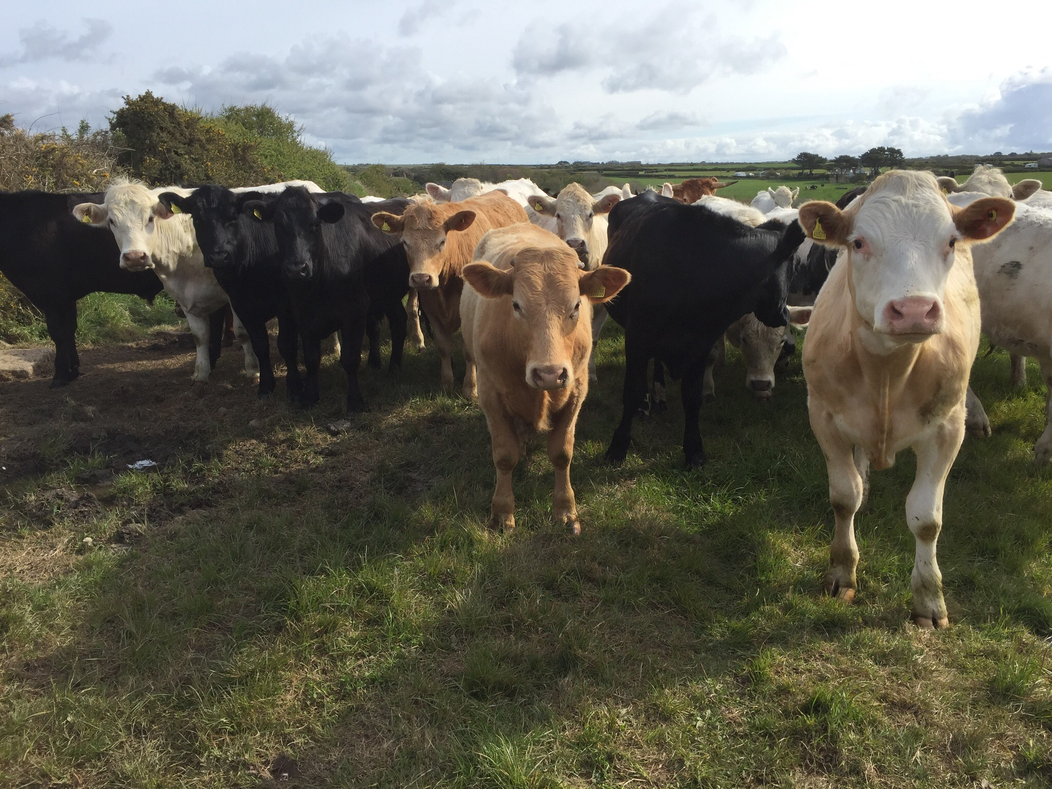 Het werd een tocht van modder ( ik beschouw mezelf nu als expert, ik kan snel de zak- (hoe diep), de plak- (hoeveel blijft er aan de schoenen hangen) en de combinatiefactor (zakken en plakken) inschatten; klimmen ( soms dacht ik dat ik nu zo naar de gevorderden klimcursus van de bergsportvereniging door kan); weer prachtige uitzichten en een kleine ( naar mijn idee vrolijke) achtervolging door jonge stieren. Ik kan dus nu ook weer snel over hekken klimmen. Maar zijn ze niet lief!