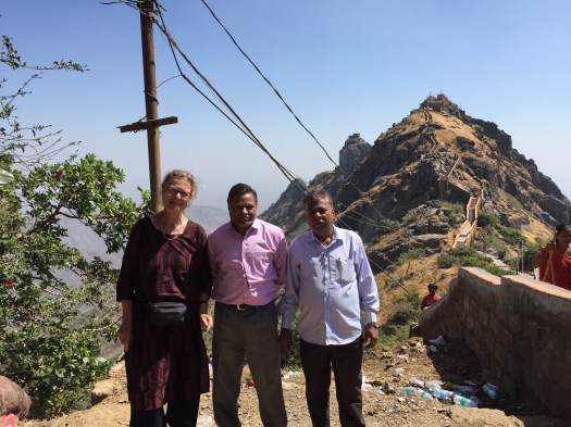 Halverwege de berg staan Jaintempels, ik had er weer een kopie’tje over bij me en wilde deze natuurlijk zien. Jaintempels hadden ze nog nooit bezocht, maar ze gingen mee.
