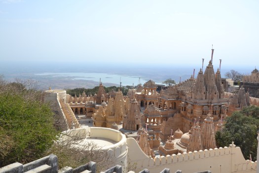 Ik kwam naar Palitana voor de Jaintempels in Shatrunjaya en wat waren ze mooi. Vandaag dus vroeg op stap om niet in de ergste hitte alweer een heuvel op te gaan. Het waren dit keer ‘slechts’ 3000 treden. Beneden bij de ingang kon je een ‘dhoti’ huren, voor 1000 rupees werd je door twee mannen naar boven gesjouwd. (zitplaats hangende aan een stok) Woog je meer dan 70 kg….. dan kon je op een echte stoel voor 2000 rupees, met vier mannen naar boven. Er stond een enorme weegschaal voor twijfelgevallen.