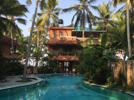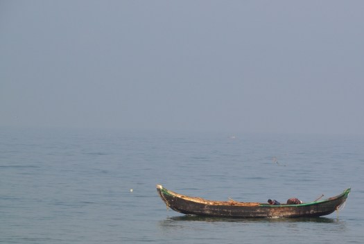 Ik ben hier eigenlijk te kort, (en waar niet?) maar wil toch een pagina besteden aan Kerala, de meest zuidelijke en zo prachtig groene staat van India, anders zou ik het ernstig te kort doen. Ik zit nu in een klein vissersdorpje aan de kust en ‘watch the days go by’. Ik wilde 2 dagen aan zee en zonder toeristisch gedoe. Was dit mogelijk, hier aan de drukke, populaire kust vol met backpackers? Ik geloof dat ik bij toeval het allerlaatste heerlijk rustige hotel gevonden heb.