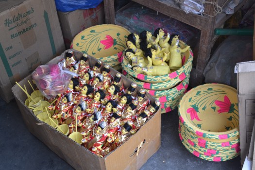 Allemaal Parvati’tjes die liggen te drogen in de zon. Daarna worden ze aangekleed.