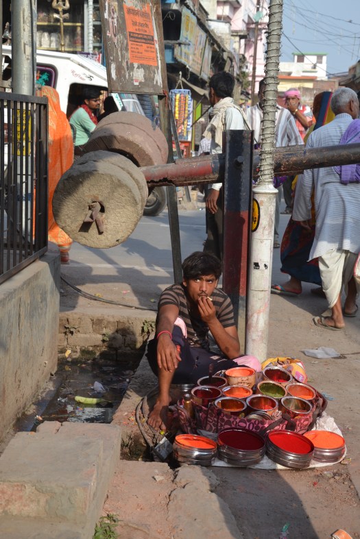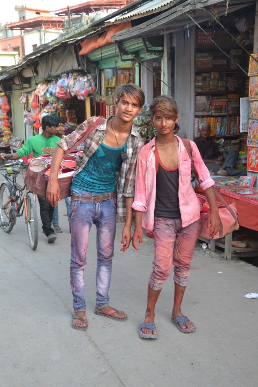 Maar terug naar Ayodhya, dit zijn de ‘poeder-jongens’, ik wist eerst niet waarom er zoveel felgekleurd poeder te koop was. Later wel….