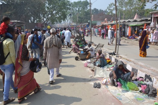 De bedelaars zitten langs het pad waarlangs de mensen na het baden terug lopen. Dat is het moment om iets te geven. Op de ‘kop’ zat eerst een man zonder benen, hij had de beste plaats. Maar niet voor lang, na 1 dag was hij verdwenen en zat er iemand anders.