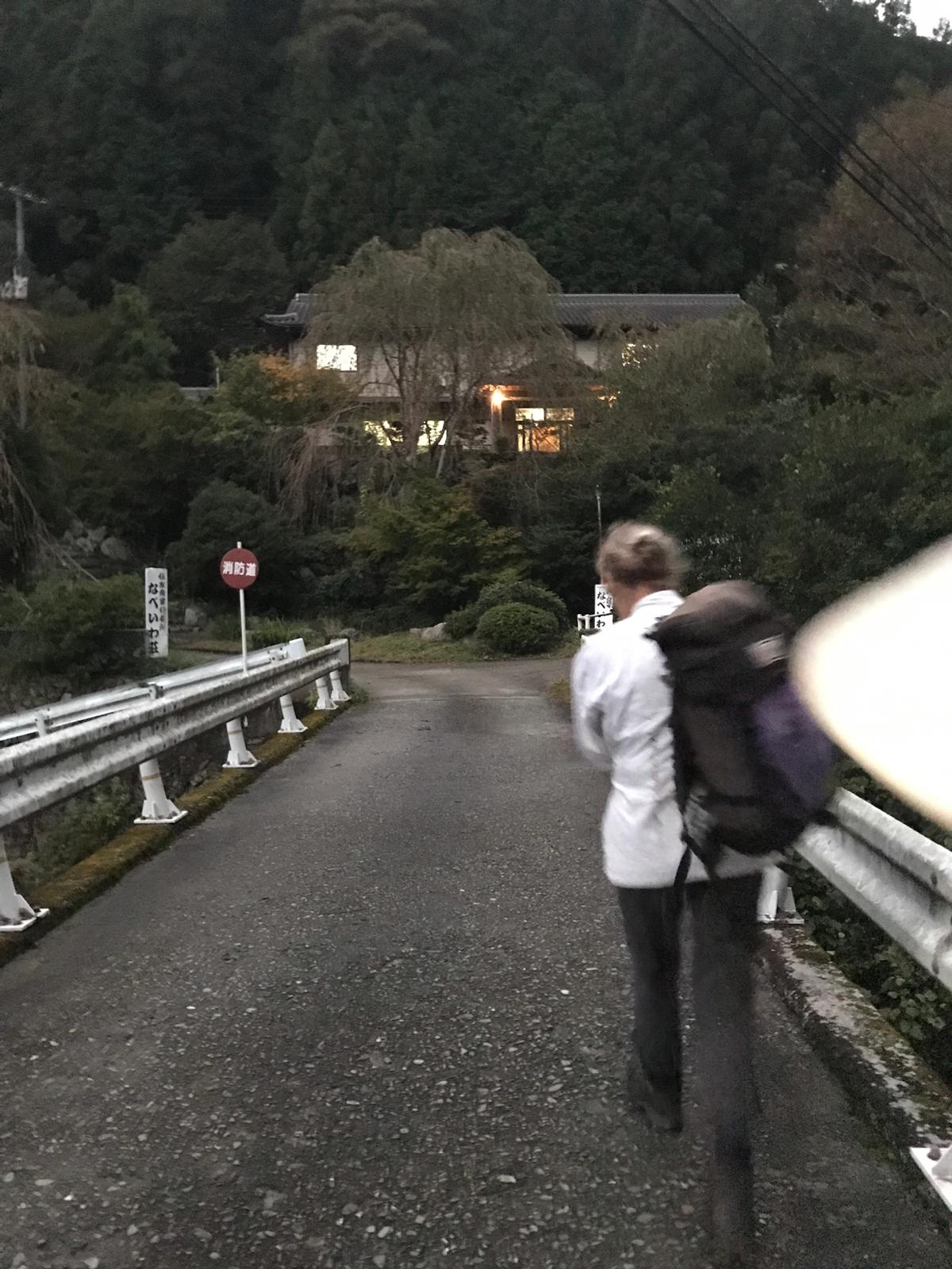 Daarna moesten we nog naar beneden, over de weg zou het lang duren, dus namen we weer ‘afsnij-paadjes’ steil omlaag. Dit hielp dus niet. Rond 5 uur begon het te schemeren en werd het snel donkerder. En waar was de herberg? We vroegen het aan 2 dames in een passerende auto. Zij boden een lift aan.