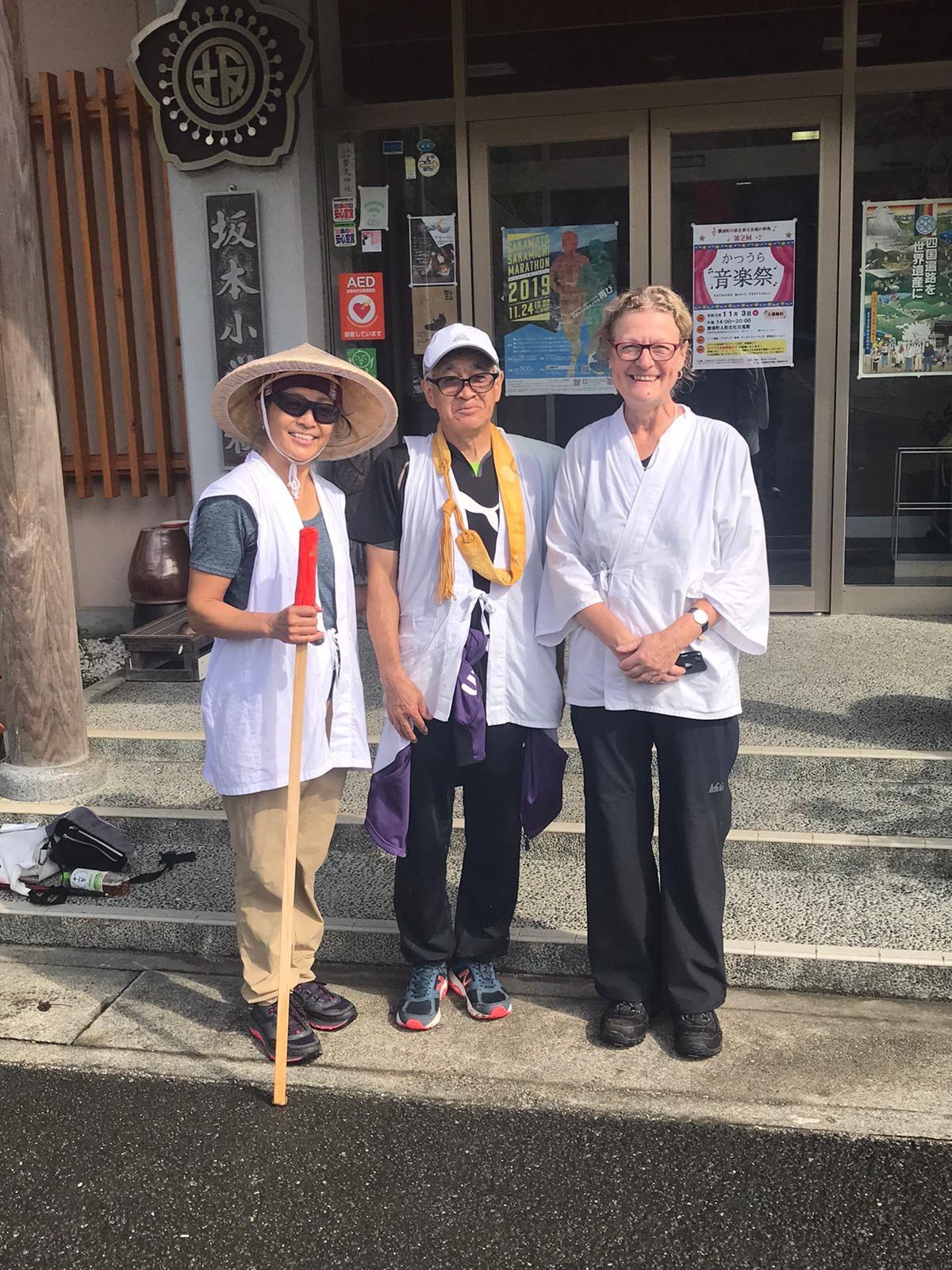 Omdat de weersvoorspelling ‘later deze ochtend regenbuien’ was, dus vroeg na een ontbijt met o.a. waterige rijstpap om 7.00 gestart met de wandeling naar de Jigenji tempel. Een japanse man die we gisteren tegenkwamen (we zagen hem daarna rennend over het pad door de regen gaan, hij zei dat hij dit ‘slechts 2 minuten’ deed) wilde met ons mee.