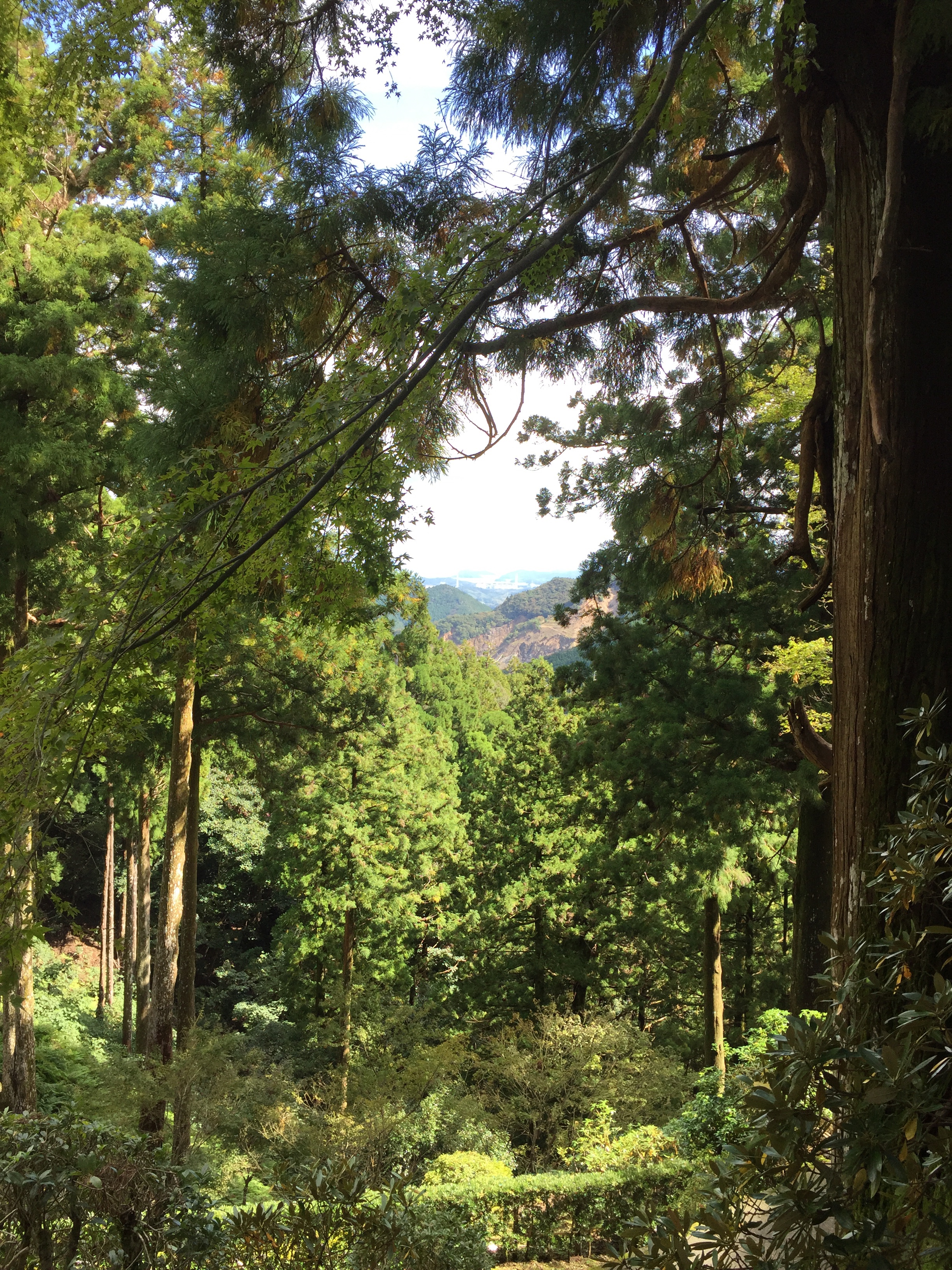 Het uitzicht vanaf tempel 22, met heel in de verte de oceaan.