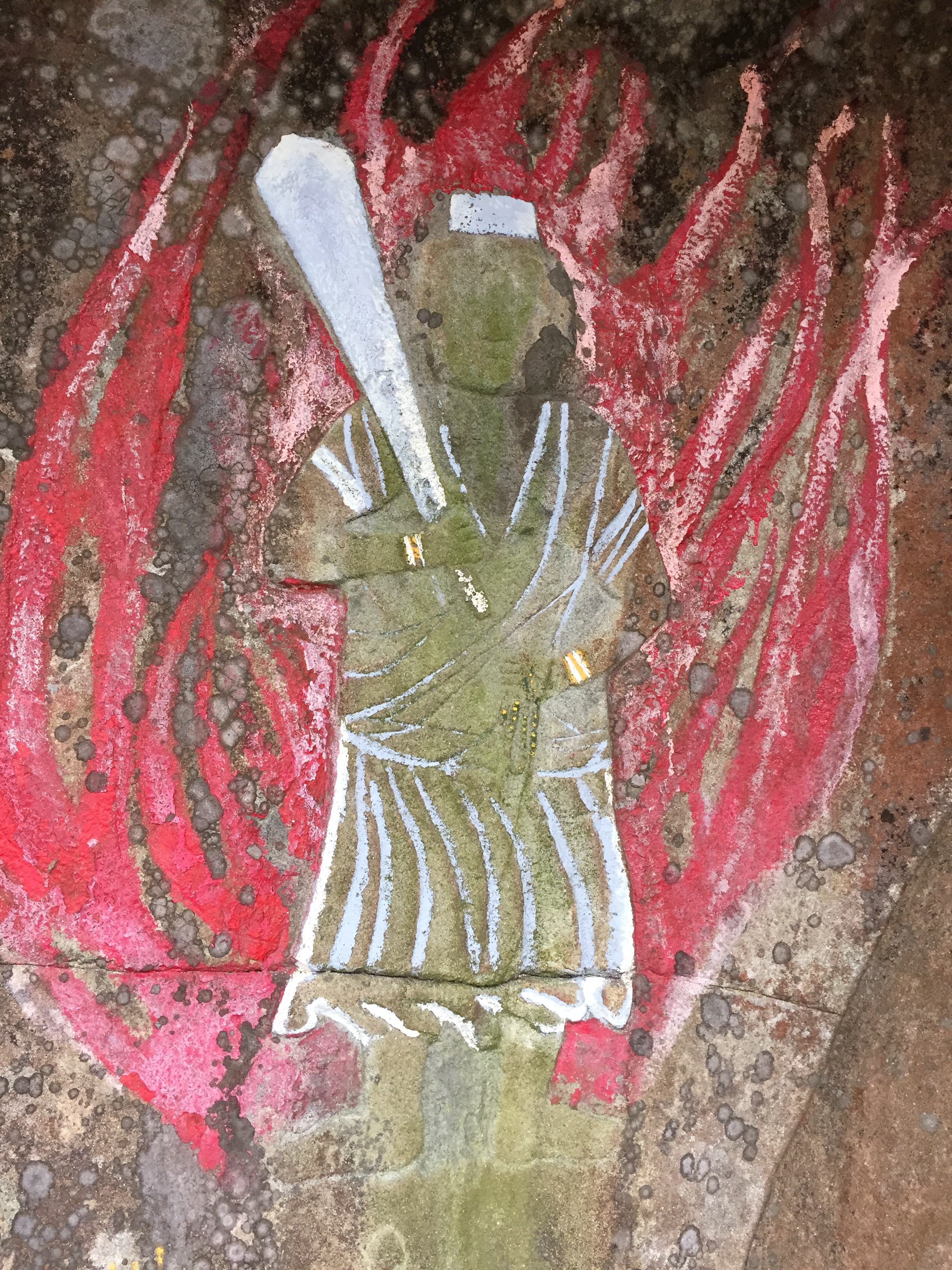 Vlak voor Minami, waar we vandaag slapen stond een tempeltje met Fudo Myoo, een angstwekkende god, die zo kwaad kijkt om al het boze te verjagen.