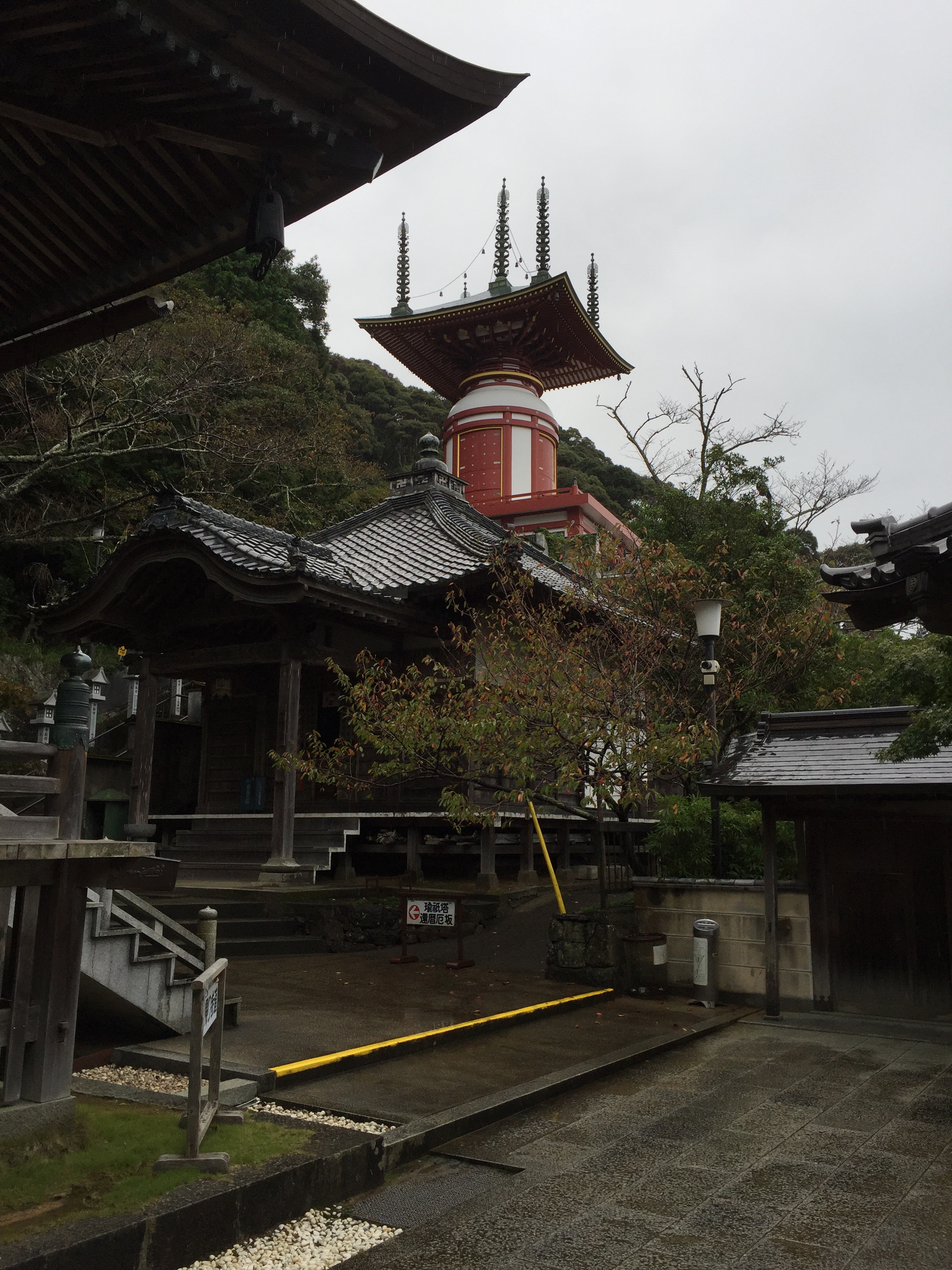 Na nog een kopje koffie bij de Lawson bereikten we tempel 23: Yakuoji. Er gaan 42 treden voor mannen en 33 voor vrouwen omhoog en de echt ware pelgrim legt hier muntjes op de traptrede als donatie aan de tempel.