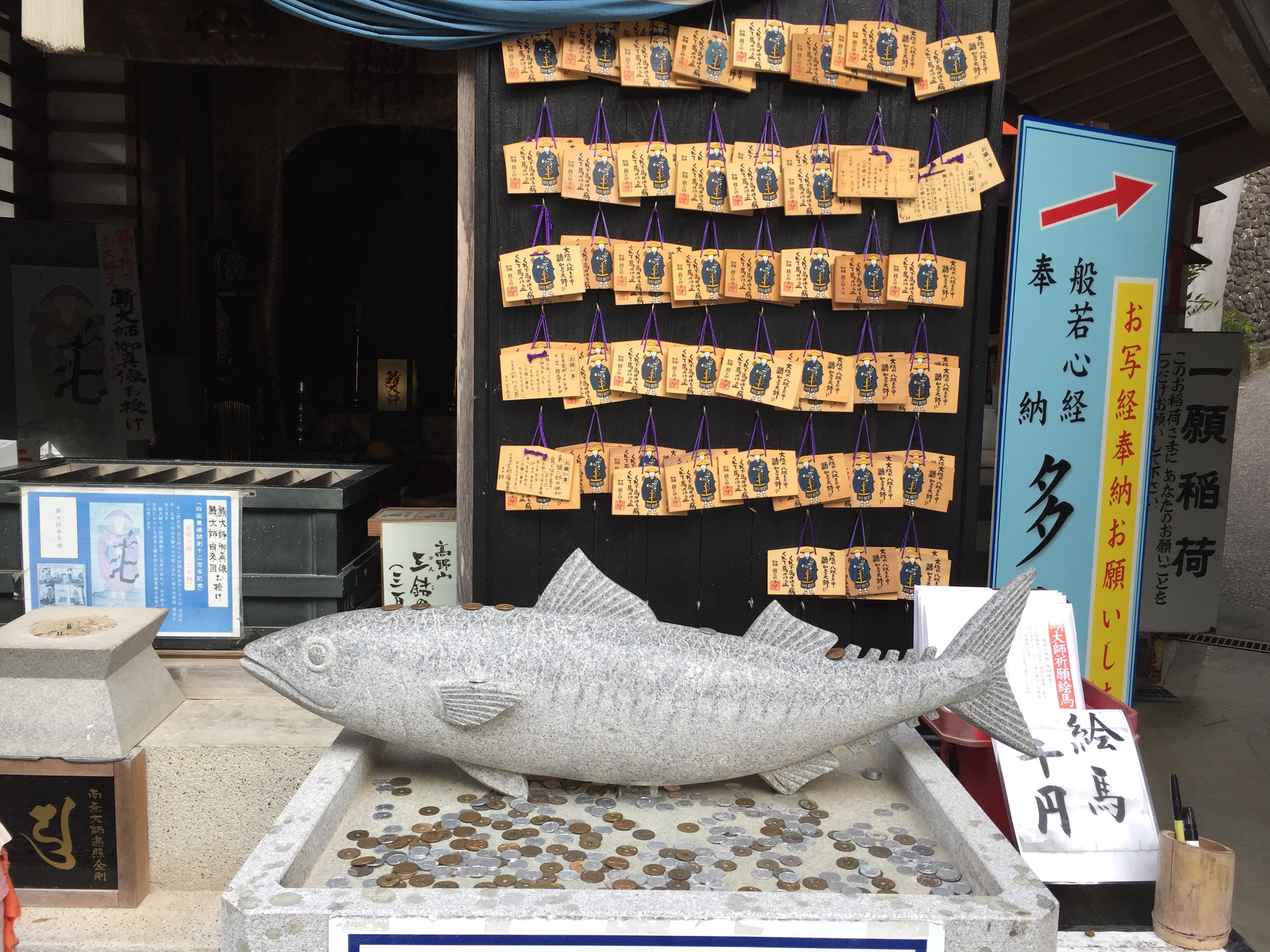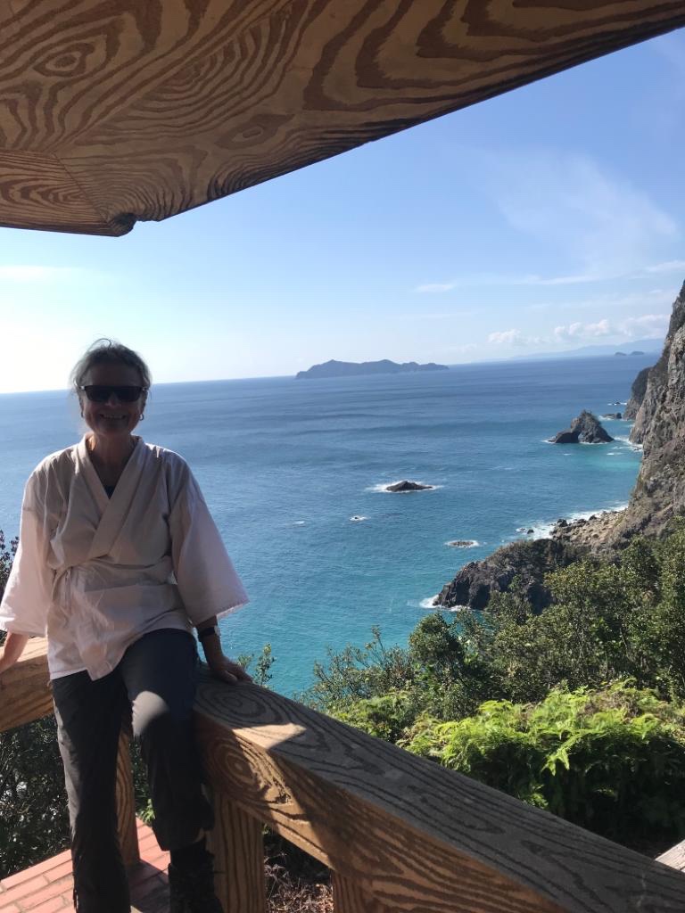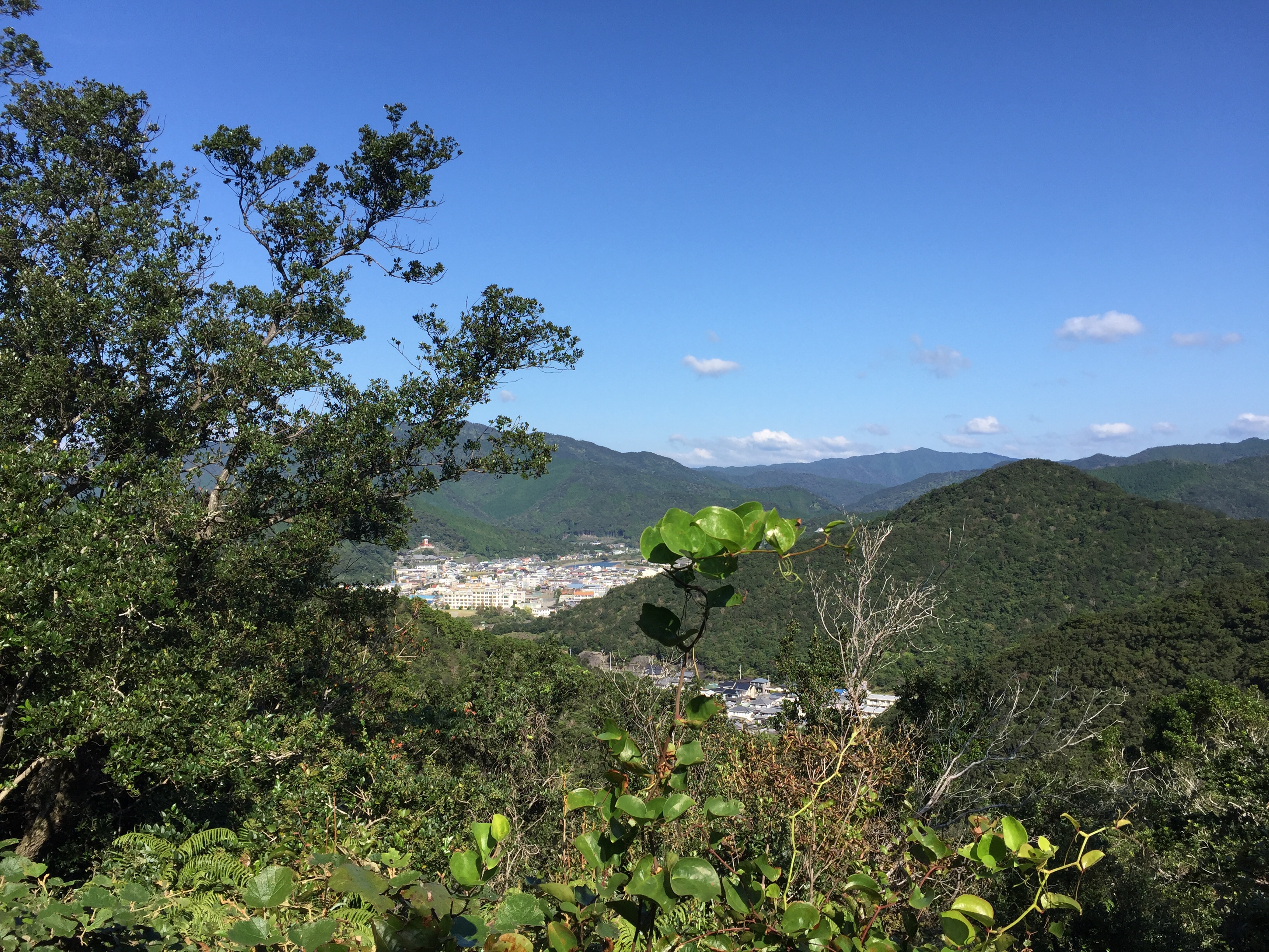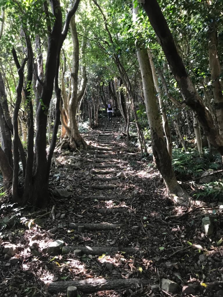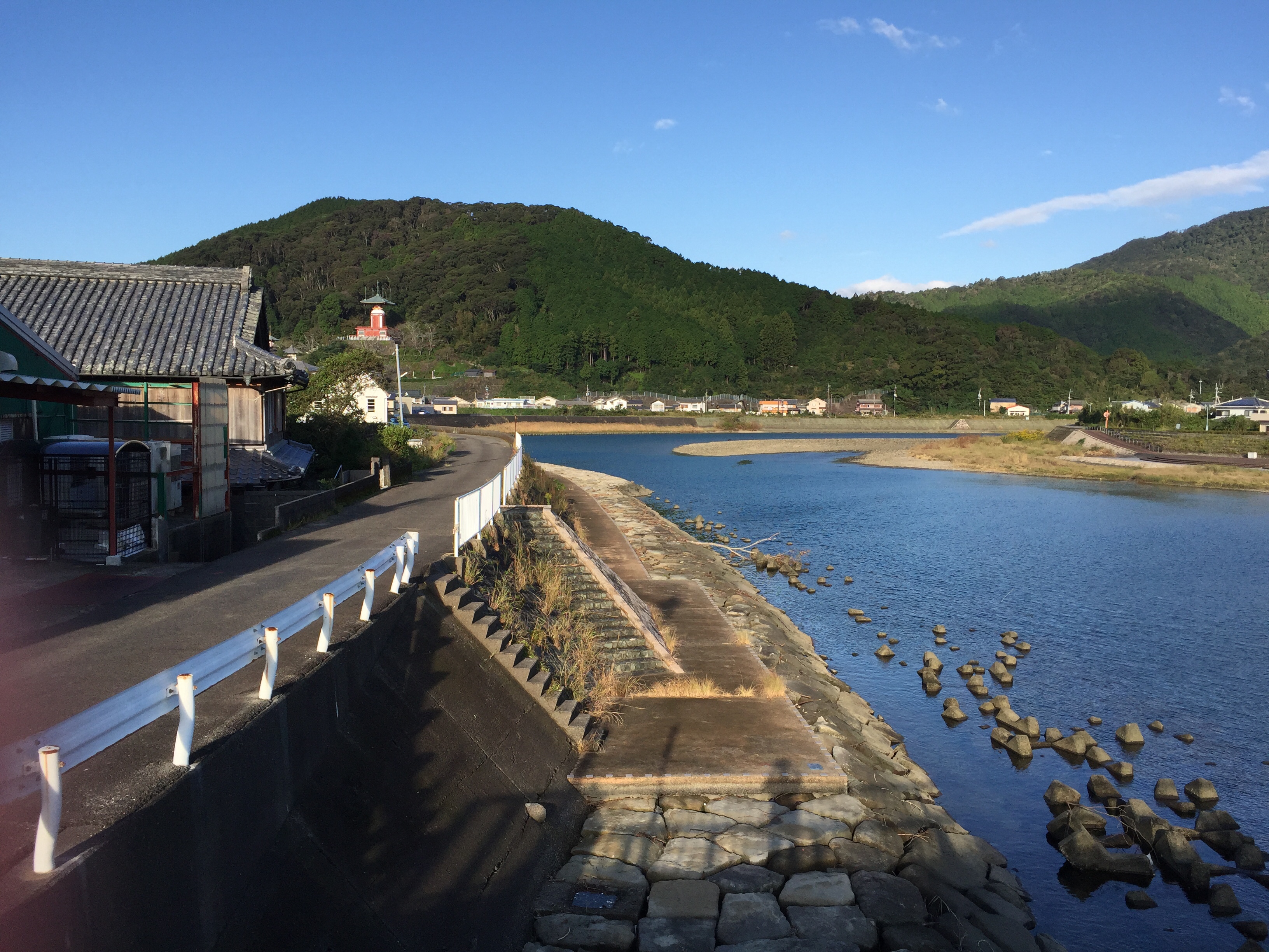 Dinsdag 22 oktober De henro route ging vandaag langs de weg en omdat het prachtig weer was (stralende zon, ver boven de 20 graden en een verkoelende wind van de oceaan) besloten we de ‘Shikoku no michi’ te wandelen. Dit is een lange afstandspad door de natuur op Shikoku. De route liep vandaag evenwijdig aan de henro-route die langs de snelweg liep. De wandeling ging van het station Hiwassa (in Miname, waar we sliepen) naar het station Yamagawachi, waar we op de trein wilden stappen om zo naar station Sabase te gaan dat bij de tempel ‘Saba Daishi’ ligt. Dit is de tempel die ter ere van het ‘wonder met de makreel’ uitgevoerd door Kobo Daishi, op de plaats van het wonder is gebouwd. Daar hadden we een slaapplaats gereserveerd.