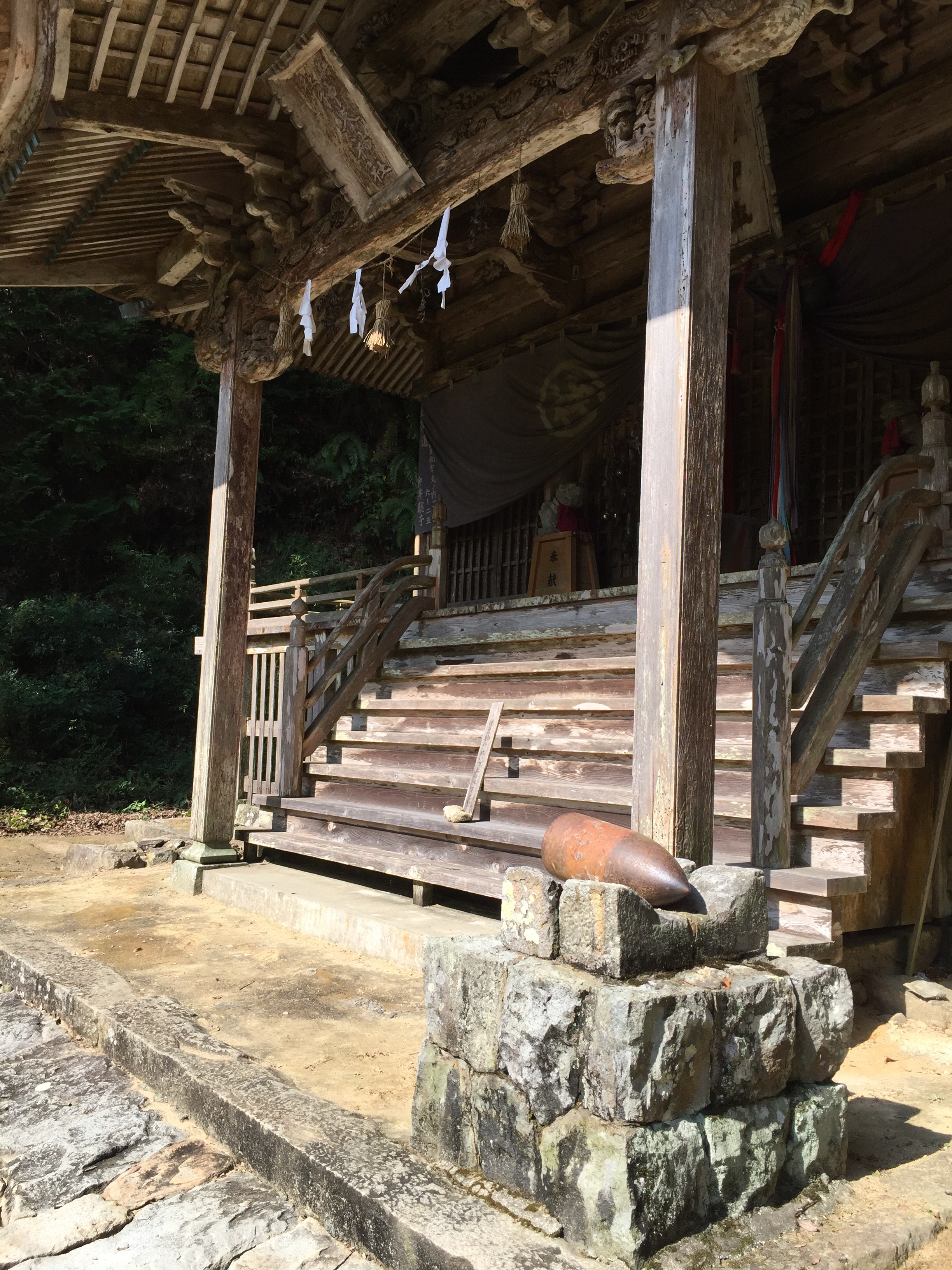 400 meter verder klimmen staat een oude Shinto schrijn.