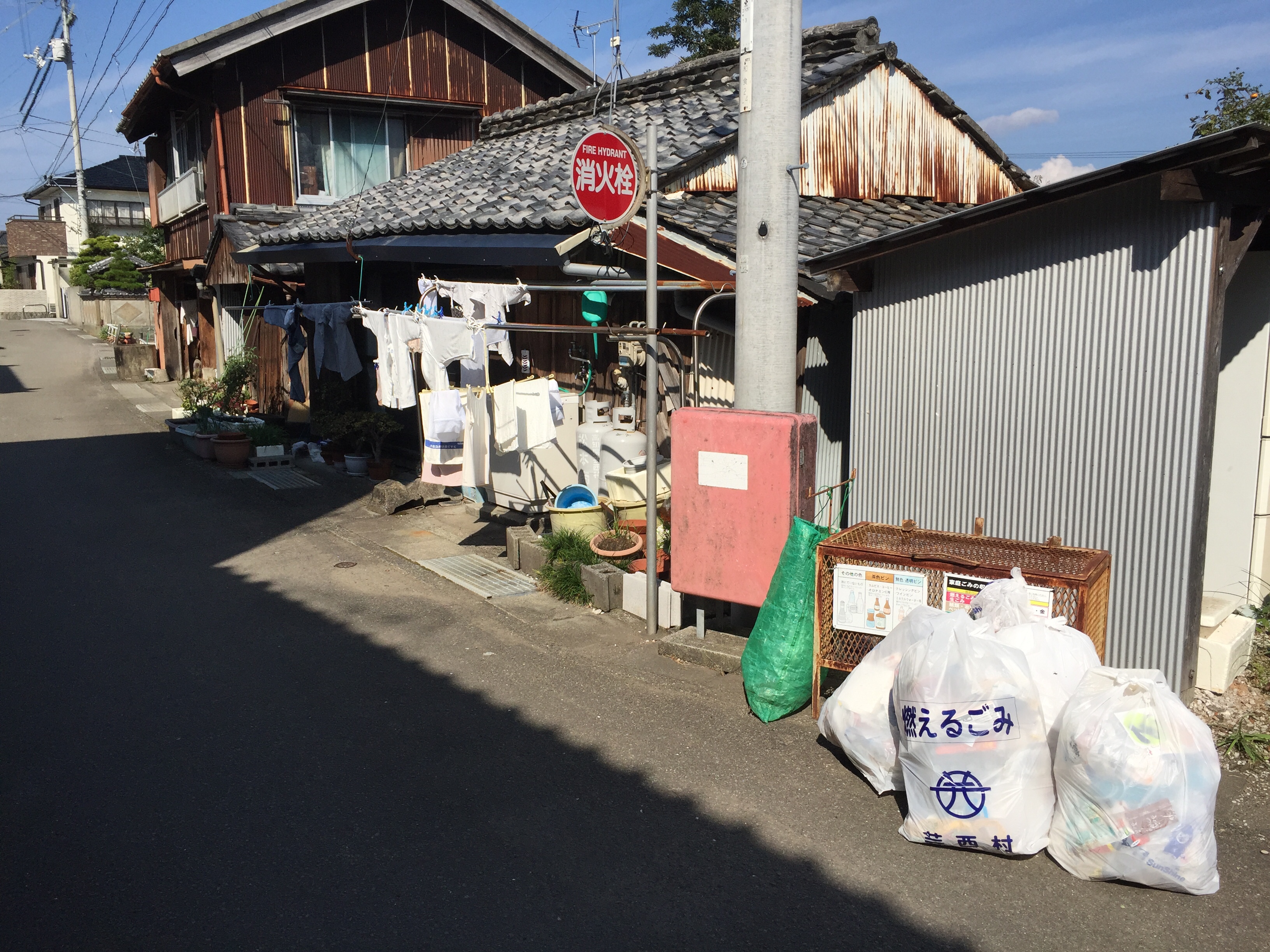 Afval is voor ons een (klein) probleem. Er zijn namelijk nergens prullebakken of zo iets. Soms staat er bij de drankenmachines een bak, maar vaak sparen we het op om het bij de Lawson weg te gooien. Het afval wordt hier ook gescheiden opgehaald. Hier staat het klaar voor de vuilnisman ( hoop ik….. we zagen veel troep in de bosjes, komt de vuilnisman hier wel?)