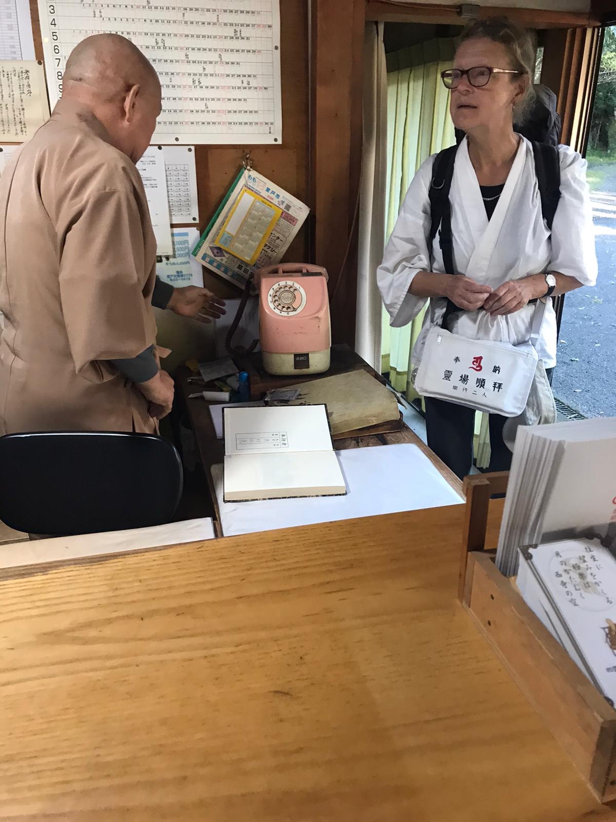 Het naambriefje wordt ingevuld en in de daarvoor bestemde bus bij de tempel gegooid. Het dient dan ‘als bewijs’ van het bezoek. De kleur van dit briefje geeft het aantal keer aan dat de tocht is afgelegd. Wit is 1-4 keer, en dan loopt het via diverse kleuren op tot brokaat: 100+. (voor de echte doorlopers). Het briefje wordt ook gebruikt om naam en adres met anderen uit te wisselen, of het wordt aan mensen gegeven die osettai geven.
