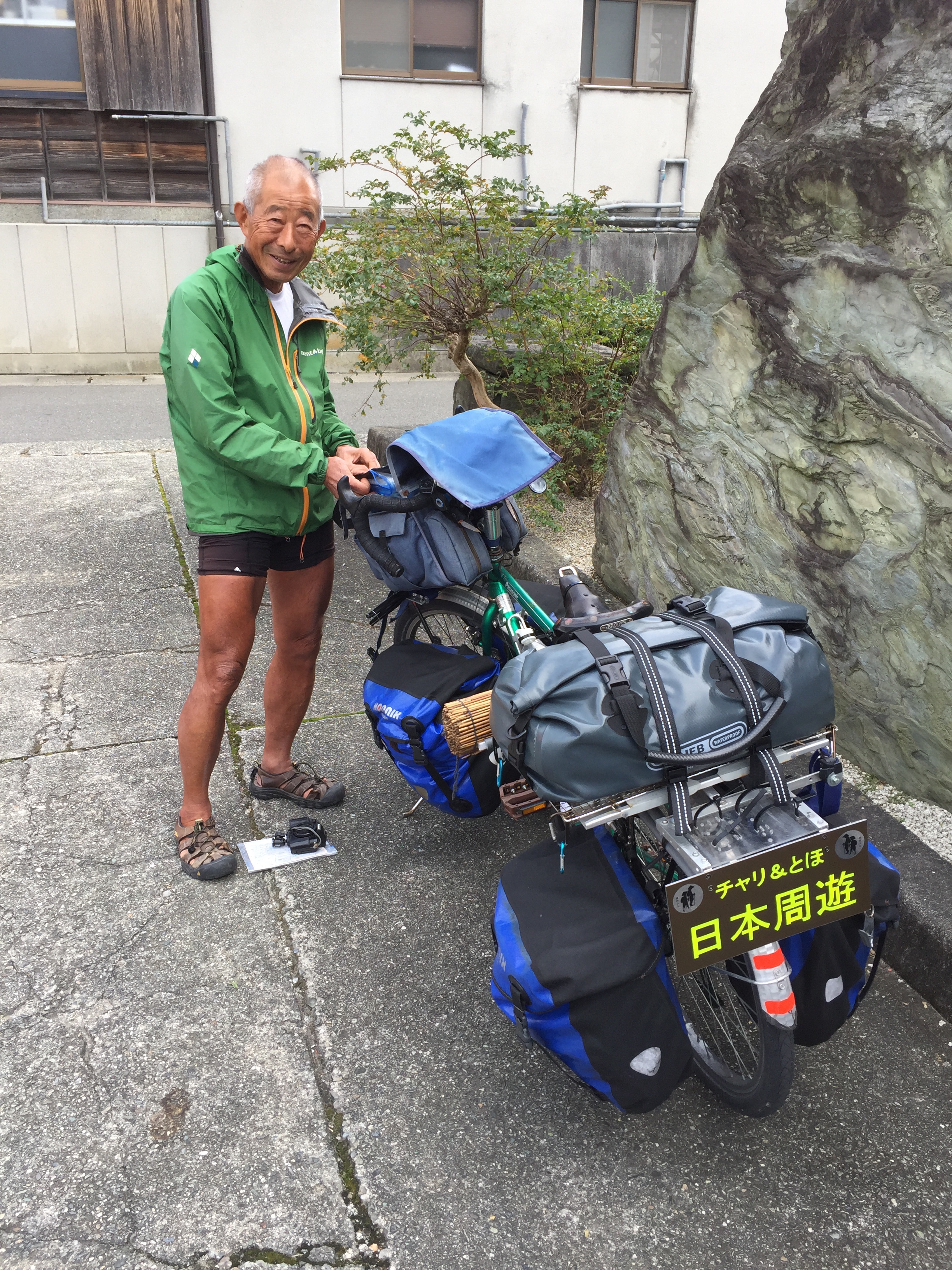 (De foto is genomen ivm de beeldige telefoon). En dan draagt de pelgrim ook (nog) een zudabukuro (een tas). Op de tas staat dezelfde tekst als op het hes. En dit hoort erin: