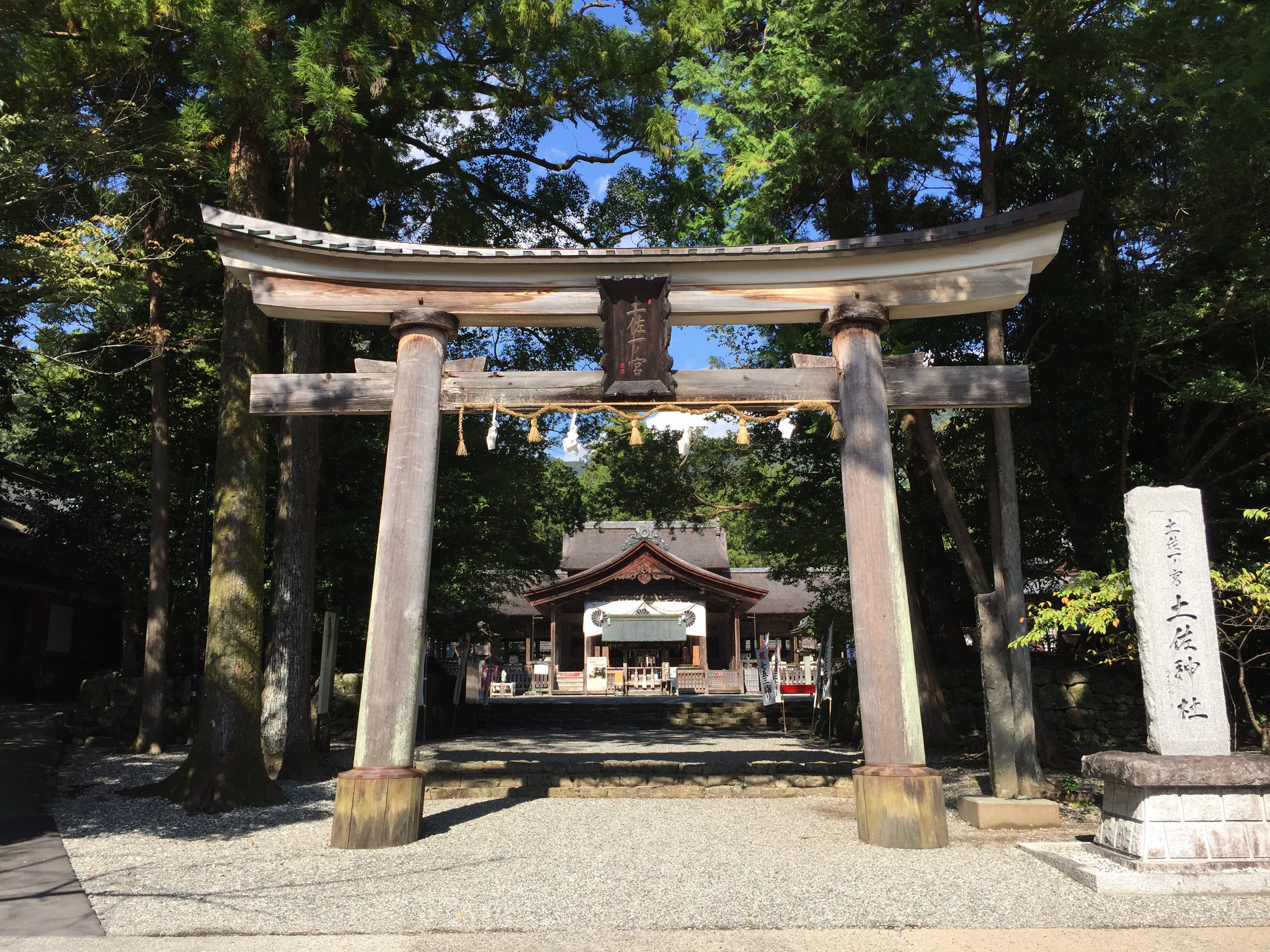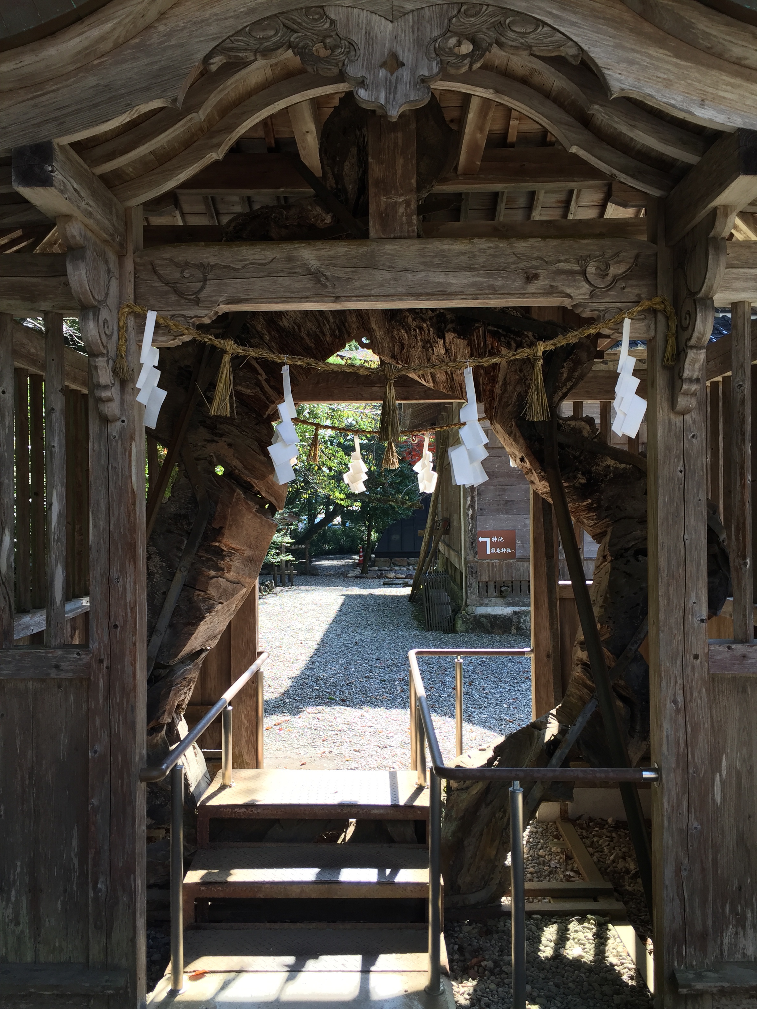 De schrijn is om een oude boom gebouwd, voor de boom-kami?