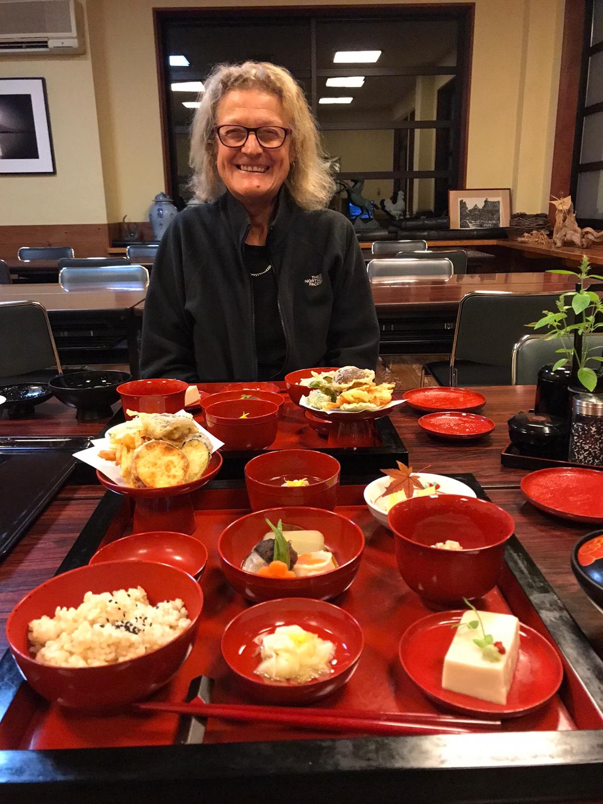 We slapen vandaag, maandag 25 november, in een tempel op een berg. Een prachtige tempel met een heerlijk gastenverblijf met 2 gasten: wij dus. Op face book wordt er gewaarschuwd dat ‘alles vol is’ en dat je minstens 2 dagen van te voren De slaapplaats moet reserveren, maar wij merken hier weinig van. Het verslag van vandaag volgt later want de internet verbinding is zwak. Op de tv (die voor ons werd aangezet) is het journaal met de paus, hij blijkt ook in Japan te zijn: met juichende mensen in een voetbalstadion (niet helemaal vol), en de paus die kussend en zwaaiend wordt rondgereden. Hij bezoekt nu de keizer. Hiervoor was er een kookprogramma. Het is allemaal op z’n Japans, maar verder zijn de tv programma’s zeer herkenbaar en net als bij ons. Alleen nemen de presentatoren als het journaal is afgelopen met een buiging afscheid. Dat zie ik ze bij ons nog niet doen.