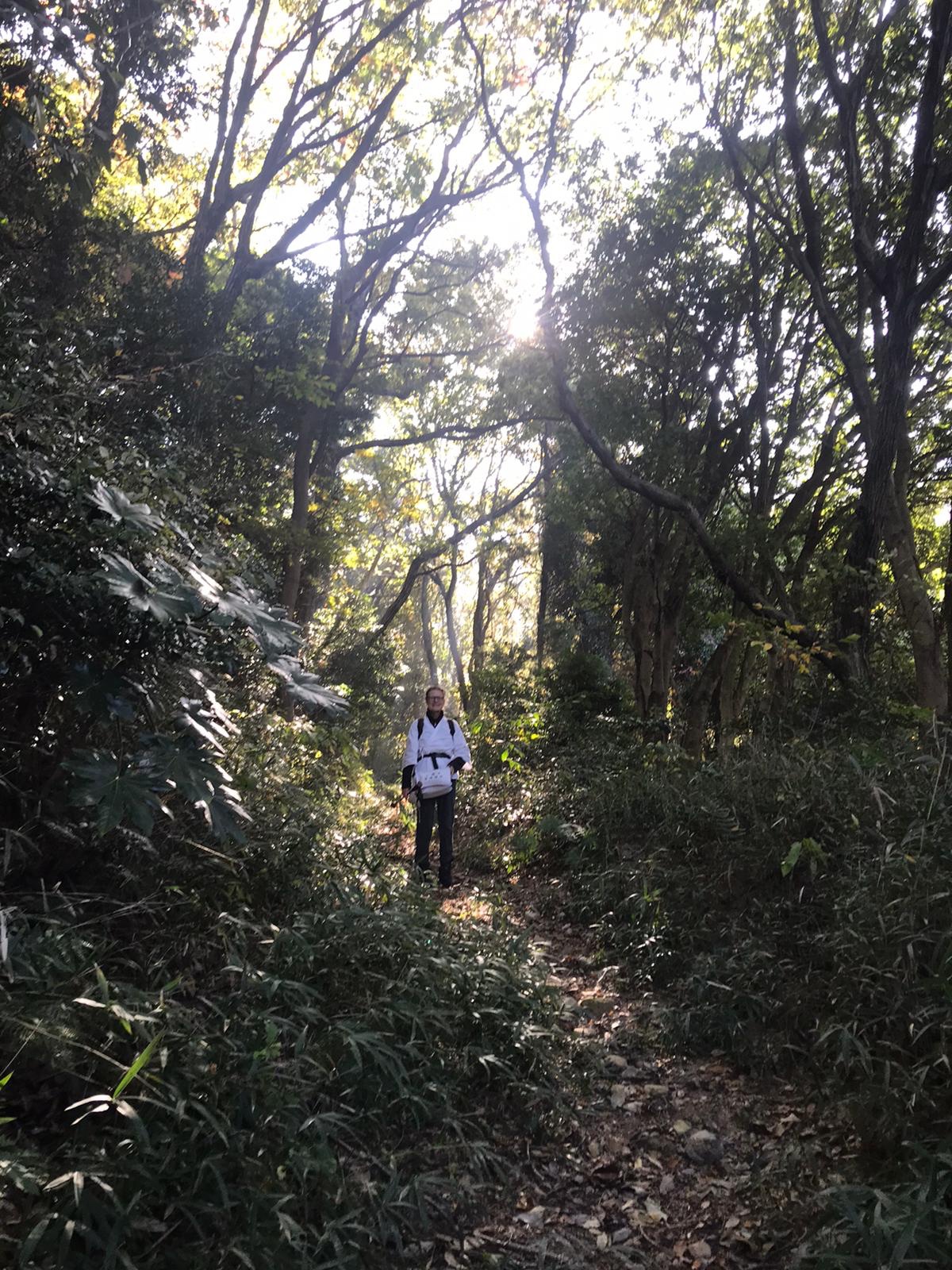 Zaterdag 23 november Terug op Shikoku moesten we weer terug naar het pad en volgens het boekje was er een korte route naar tempel 52, dus gingen wij vol goede moed op zoek naar dit pad. Na wat zoeken en 1 verkeerde keuze kwamen we op een pad, erg overwoekerd (weinig gebruikt?) dat we toch maar, (ondanks dat we hier geen tekens zagen) vervolgden. Na een uur kwam er een man ons tegemoet die ons kon geruststellen, het was het goede pad.