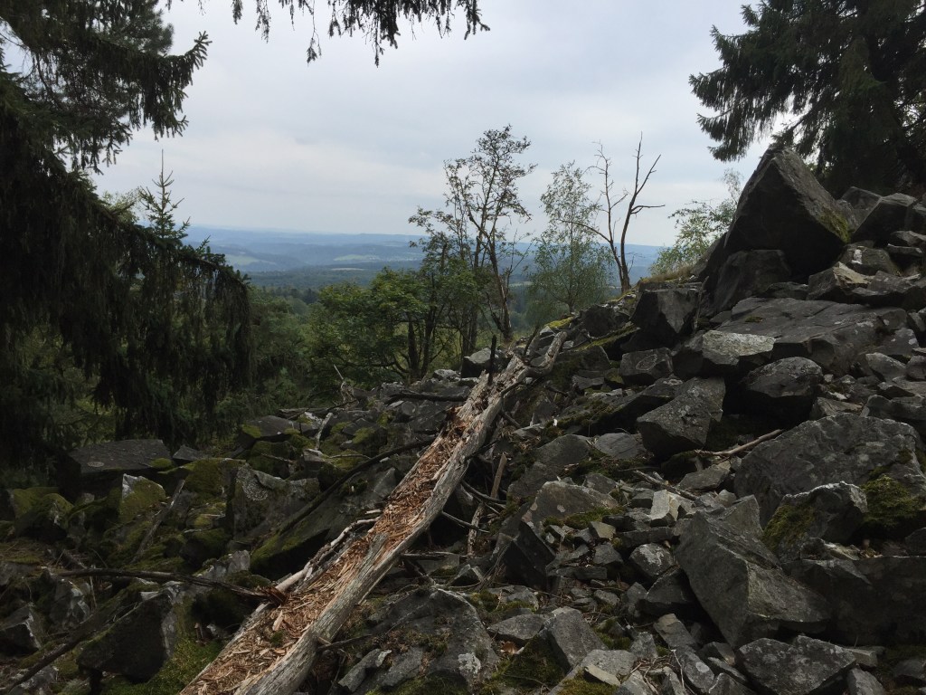 Bij de burcht was het de hoek om en toen liep ik in het bos en ging het omhoog en omlaag, als maar door, uren en uren lang.