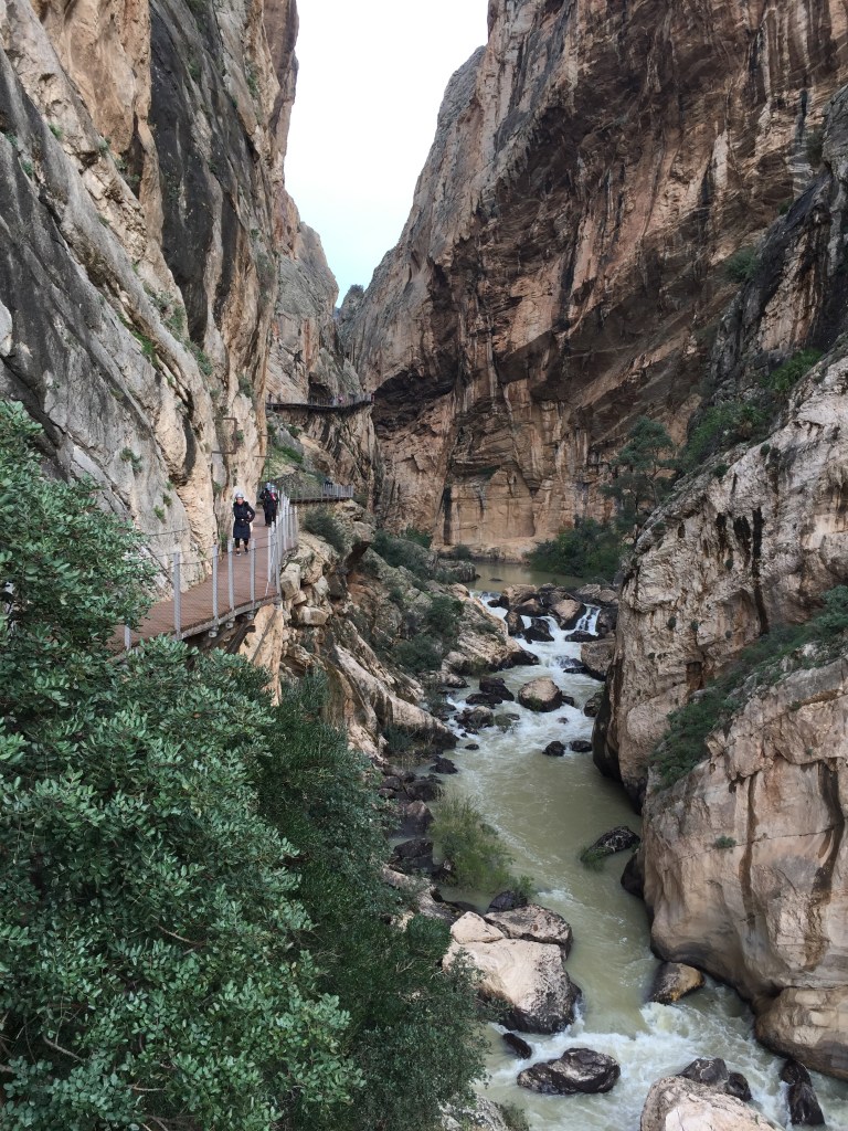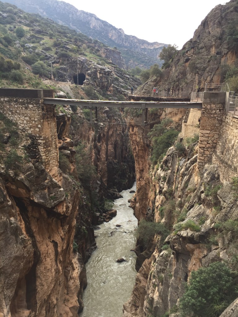 De Caminito del Rey (de kleine wandeling van de koning) is een enorme kloof waar doorheen een pad is aangelegd. Het gebied ligt op ongeveer 45 minuten rijden van Antequera. We mochten er alleen door in een groep en met een helm op (en met een gids, die veel Spaans sprak maar wel erg enthousiast was).
