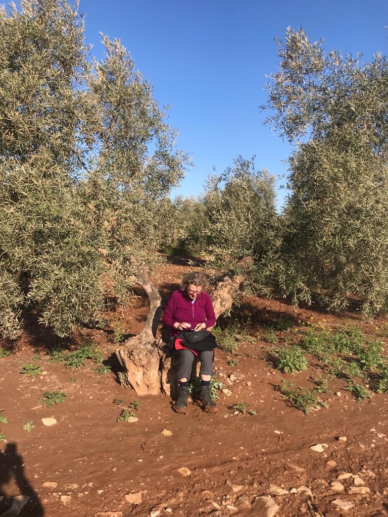 Na deze korte onderbreking ging het weer verder door de olijvenboomgaarden, nu bergopwaarts en zonder klei. De uitzichten werden weer prachtig.
