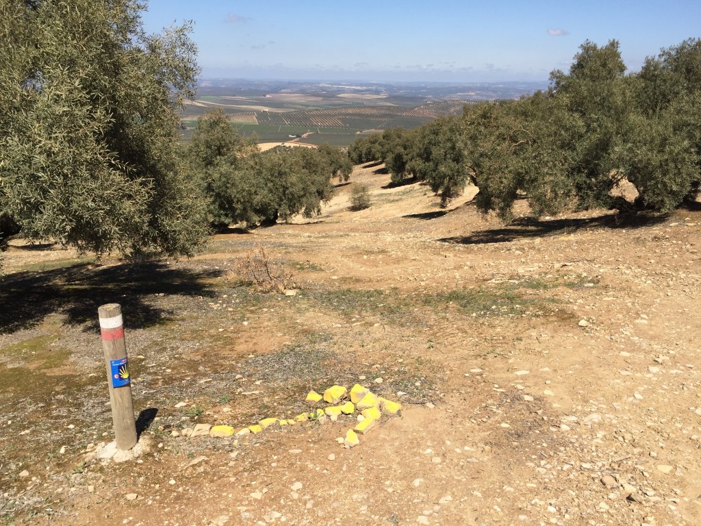 Vandaag liepen we van Antequera naar Villanueva de Algaidas. We zijn vroeg op pad gegaan en de wereld was als nieuw. Na 6 km ging het pad door olijven boomgaarden en omdat het de dagen hiervoor regenachtig was geweest was het pad een grote klei massa geworden.