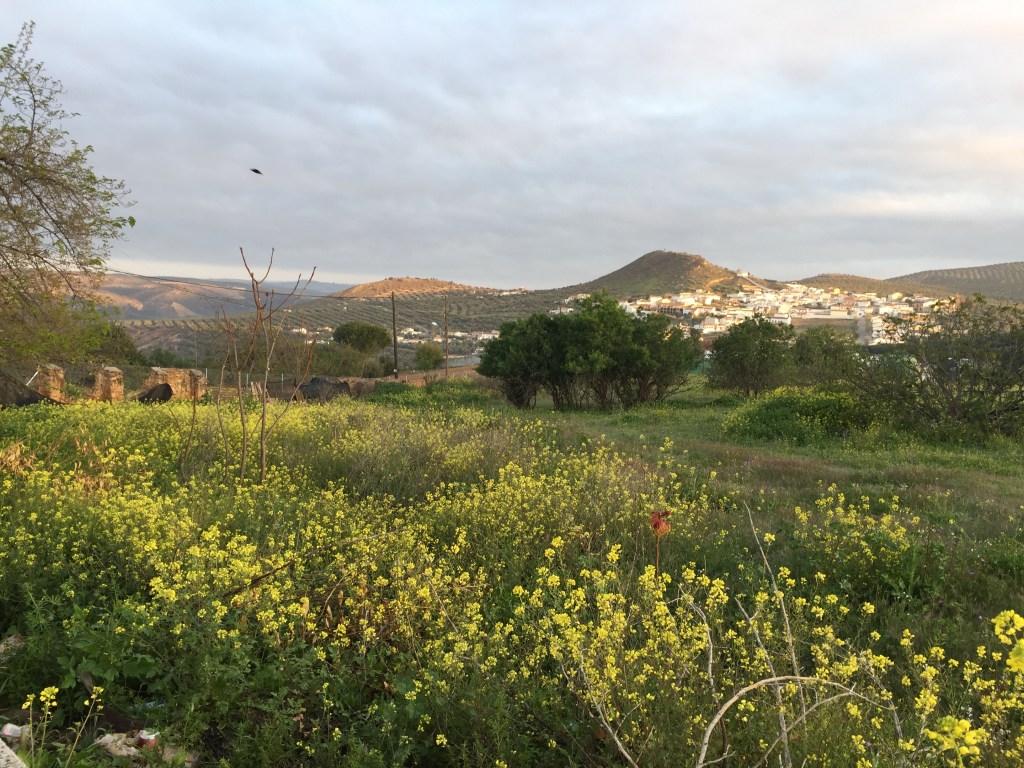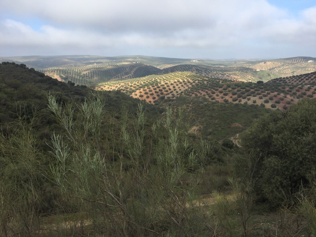 Bij binnenkomst in Lucena moesten we eerst lang, erg lang door een soort industrieterrein lopen. En toen bleken we ook nog een hotel 4 km buiten de stad gereserveerd te hebben. En dat was natuurlijk weer een berg op. Maar het hotel vergoedde daarna alles. Zalig gegeten op een terras, (met uitzicht op de olijfgaarden en ondergaande zon), een kamer met bad, zonder wifi, alles echt Spaans. We hebben hier alleen maar uitgerust……….
