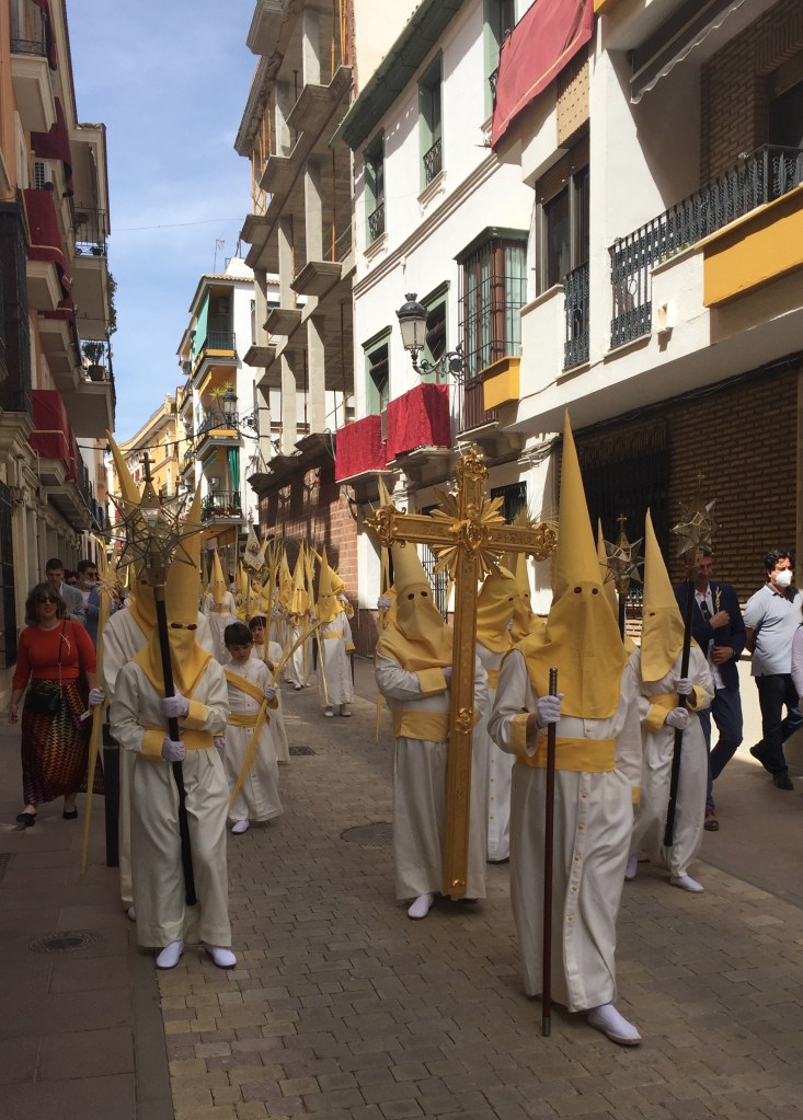 Iedere kerk heeft een eigen broederschap met een eigen processie in een eigen kleur. De mensen met puntmutsen zijn de boetedoeners. Dit gebruik komt nog uit de Spaanse Inquisitie toen veroordeelden door het dragen van zo’n muts verplicht boete moesten doen.
