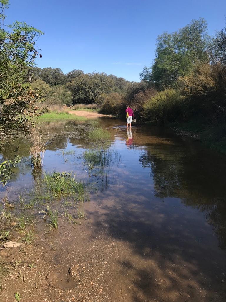 En vandaag, woensdag 20 april liepen we van Alcaracejos naar Hinojosa del Duque. Het weer is vannacht omgeslagen, we liepen de 21 km bijna helemaal met tegenwind en in de regen. Na 3 km kwam er een dorpje waar we de bar niet konden ontdekken, (het had wel een beeldige kerk, maar geen foto ivm de regen). Na 10 km was er gelukkig weer een dorpje met bar, waar we koffie dronken en een croissant aten (maar was deze oud? Te snel uit de oven? Nog niet gaar? Hij bleef in mijn maag de rest van de dag erg aanwezig)