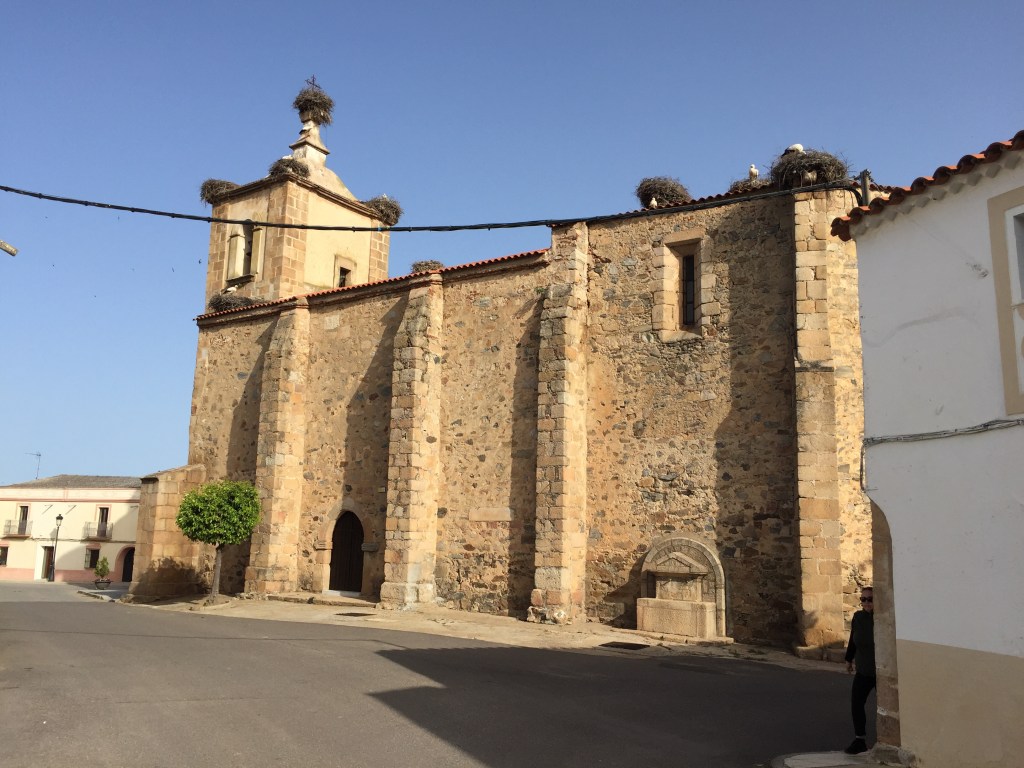 De laatste dag passeerden we het plaatsje Trujillanos. Hier bleek een kerk te staan gesticht door de Santiagoridders in 1327 om de omgeving te herbevolken. Het land is hier vruchtbaar dus dit lukte. Deze informatie vond ik op een blog van een andere pelgrim. Ter plekke geen bordje, geen info.